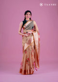 Celebrate timeless elegance with the Beige Floral Printed Organza Saree. Crafted from lightweight polyester blended organza, this saree features a soft beige base adorned with intricate floral digital prints, enhanced by exquisite zari weaving details.
