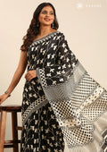 Black X Tussar Printed Art Tussar Matka Silk Saree