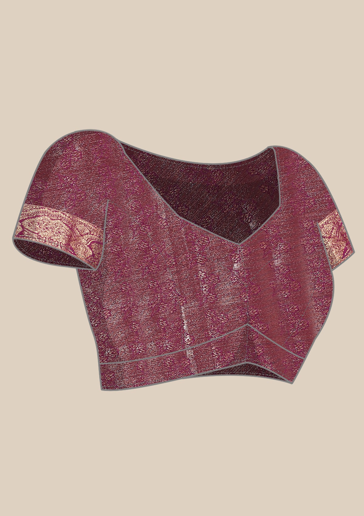 - The rich pallu enhances the saree's grandeur with intricate detailing