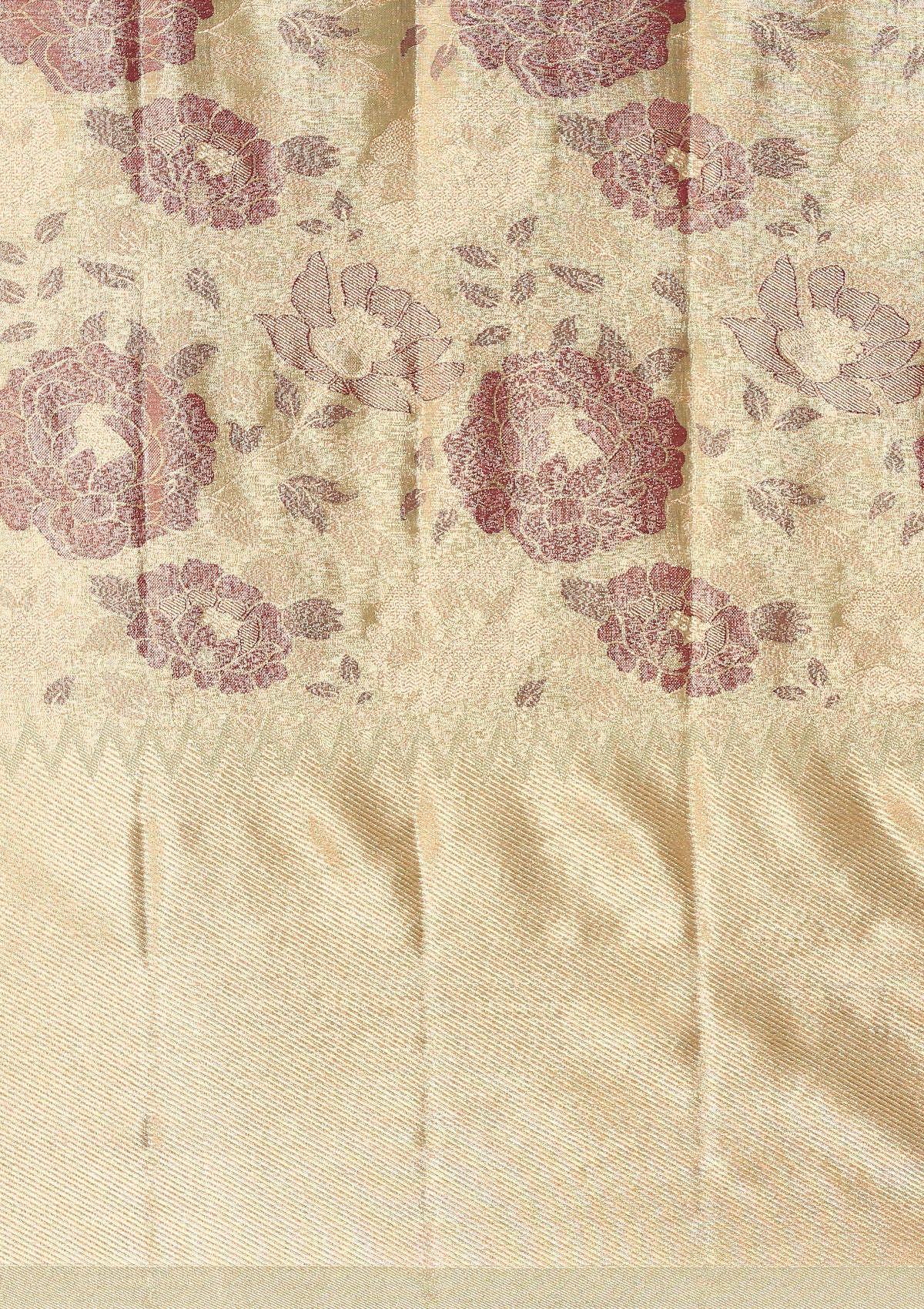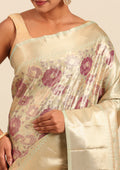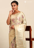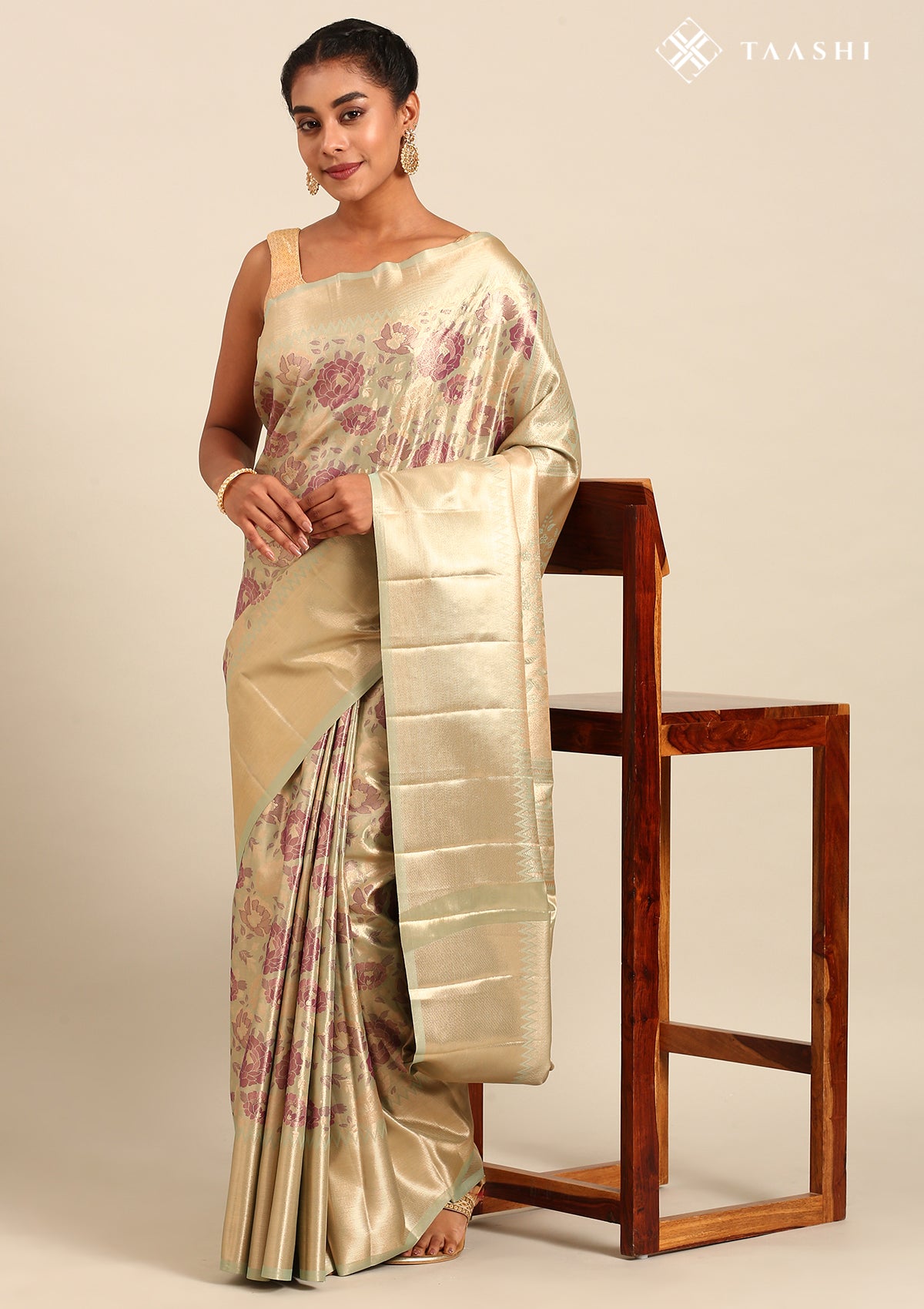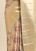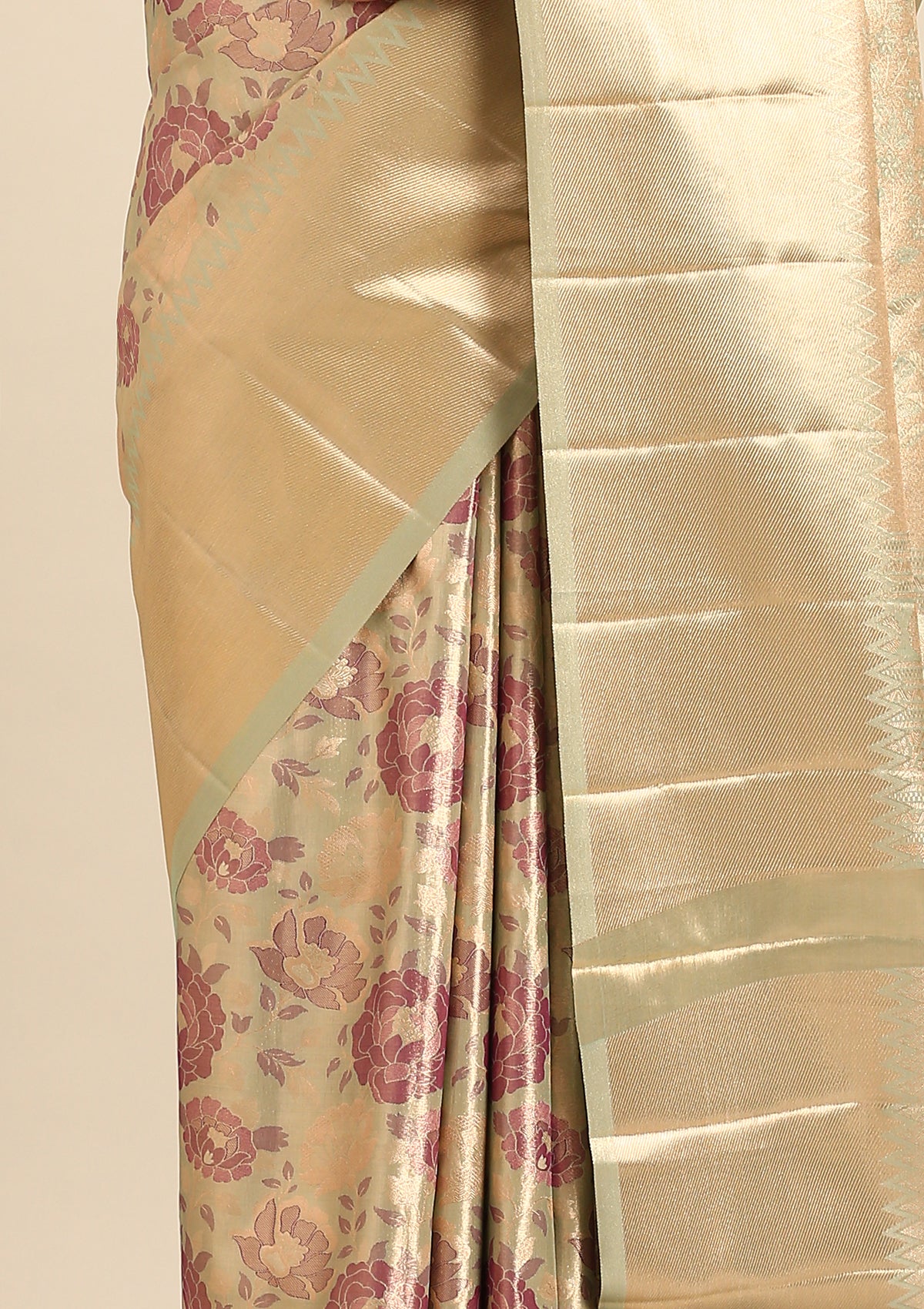 Cream and Mauve Floral Pattern Tissue Brocade Kanchipuram Saree