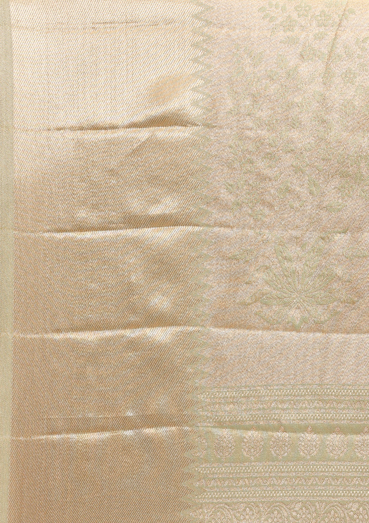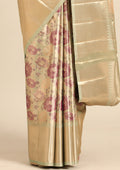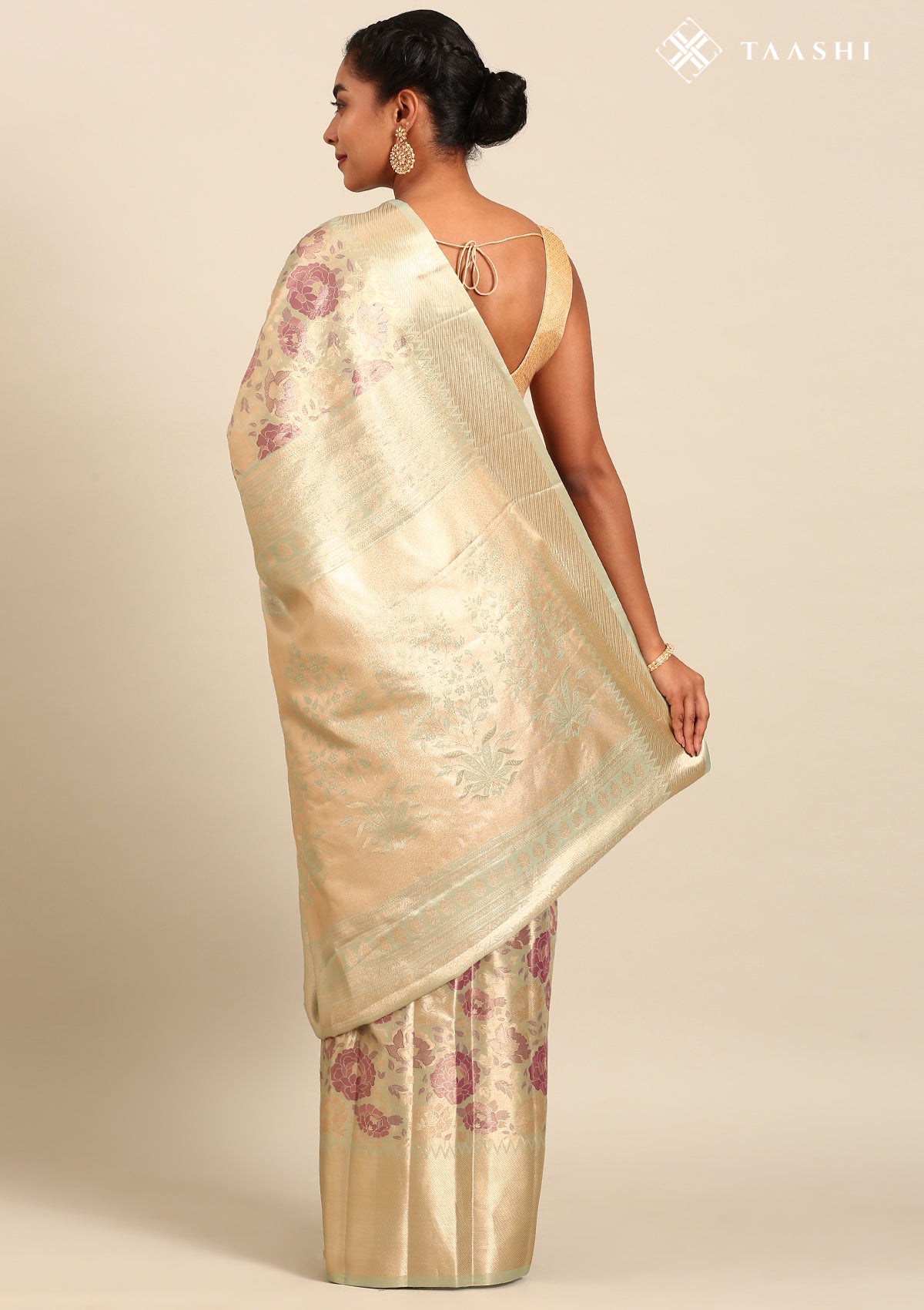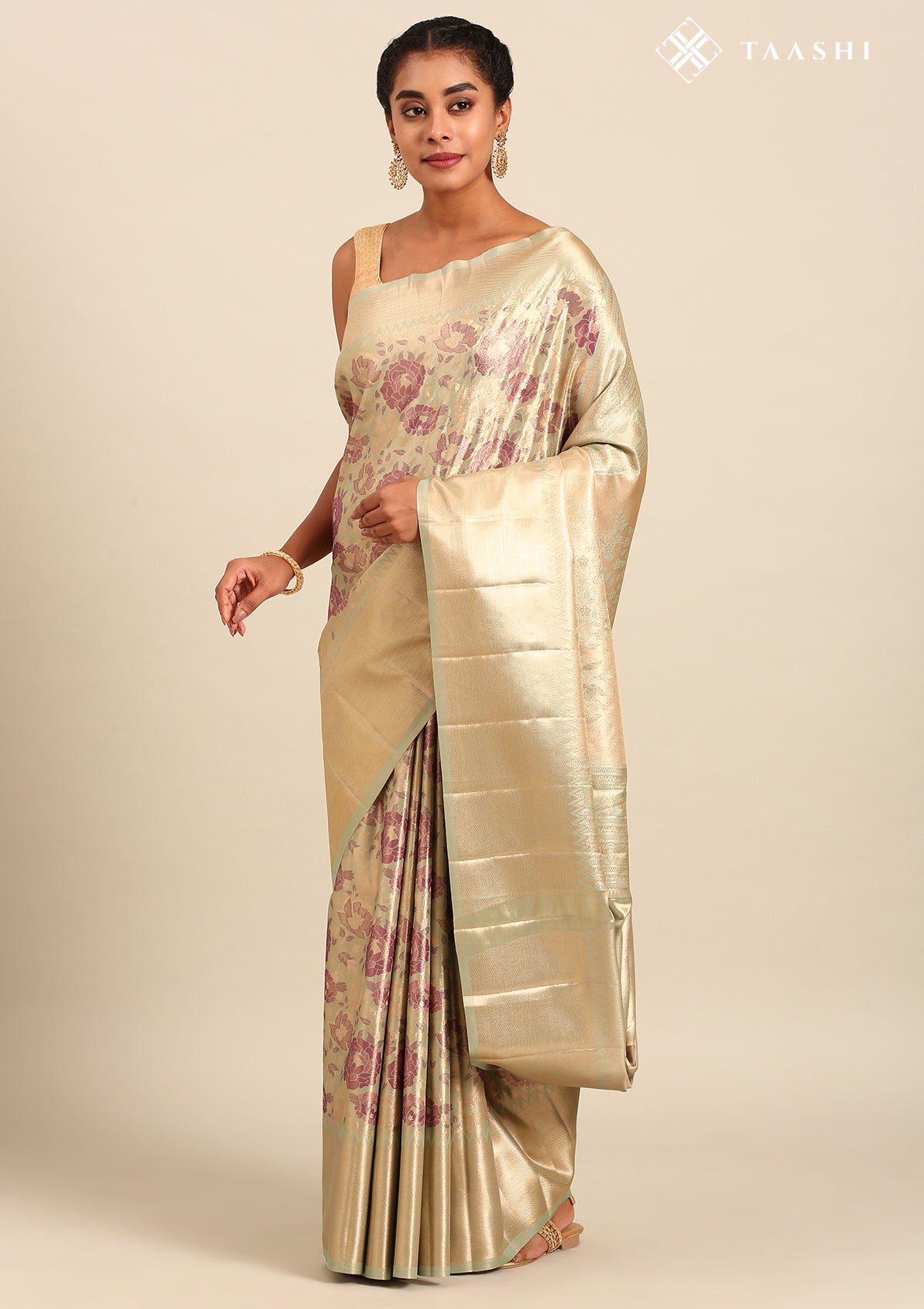 Cream and Mauve Floral Pattern Tissue Brocade Kanchipuram Saree
