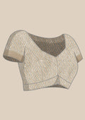 Gracefully crafted in soothing cream and mauve tones, this polyester blended tissue saree exudes refined elegance and timeless appeal.