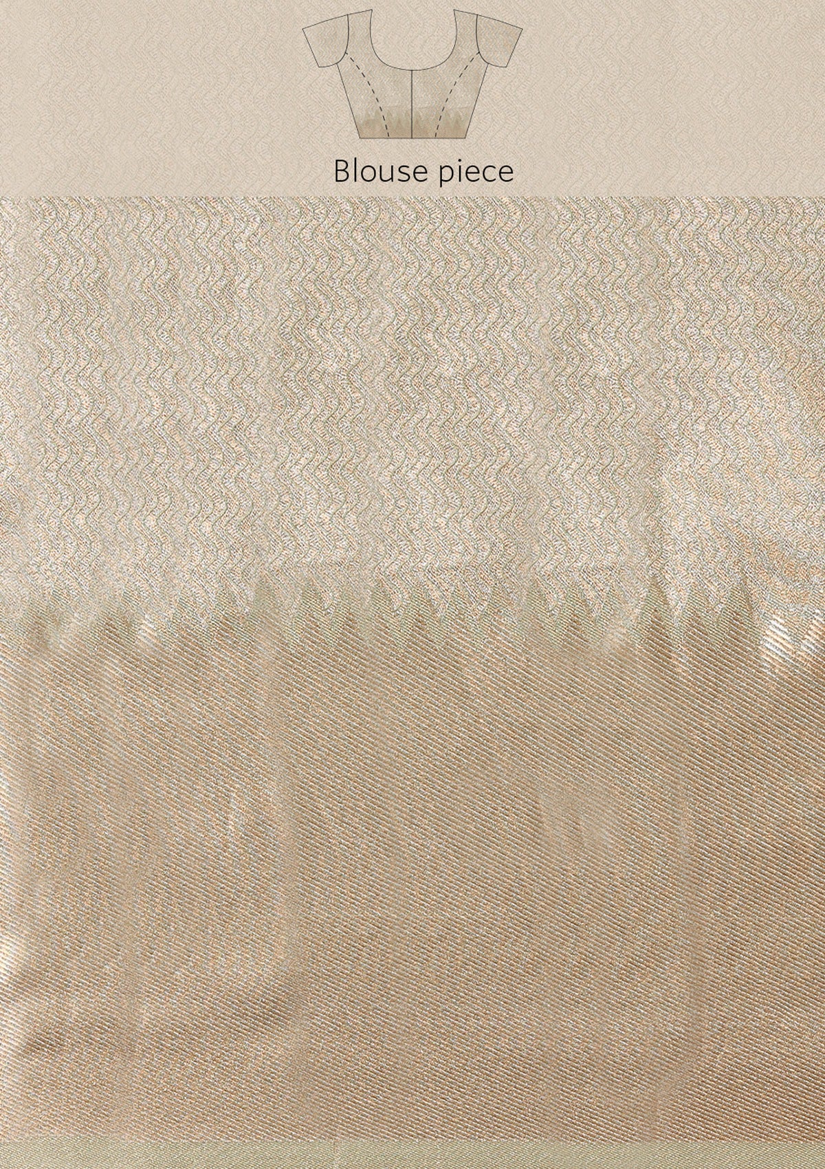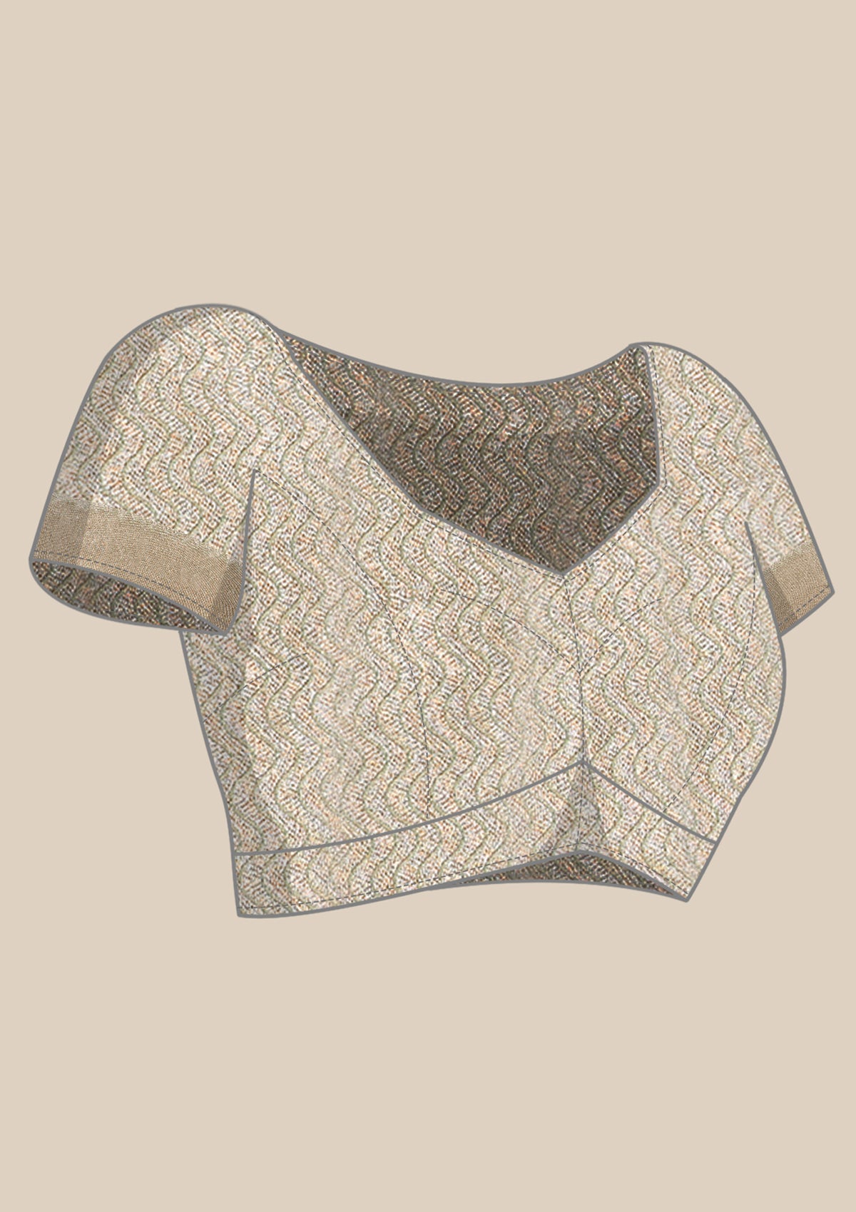 A beautifully woven pallu adorned with subtle wave designs enhances the saree’s graceful flow and visual charm.