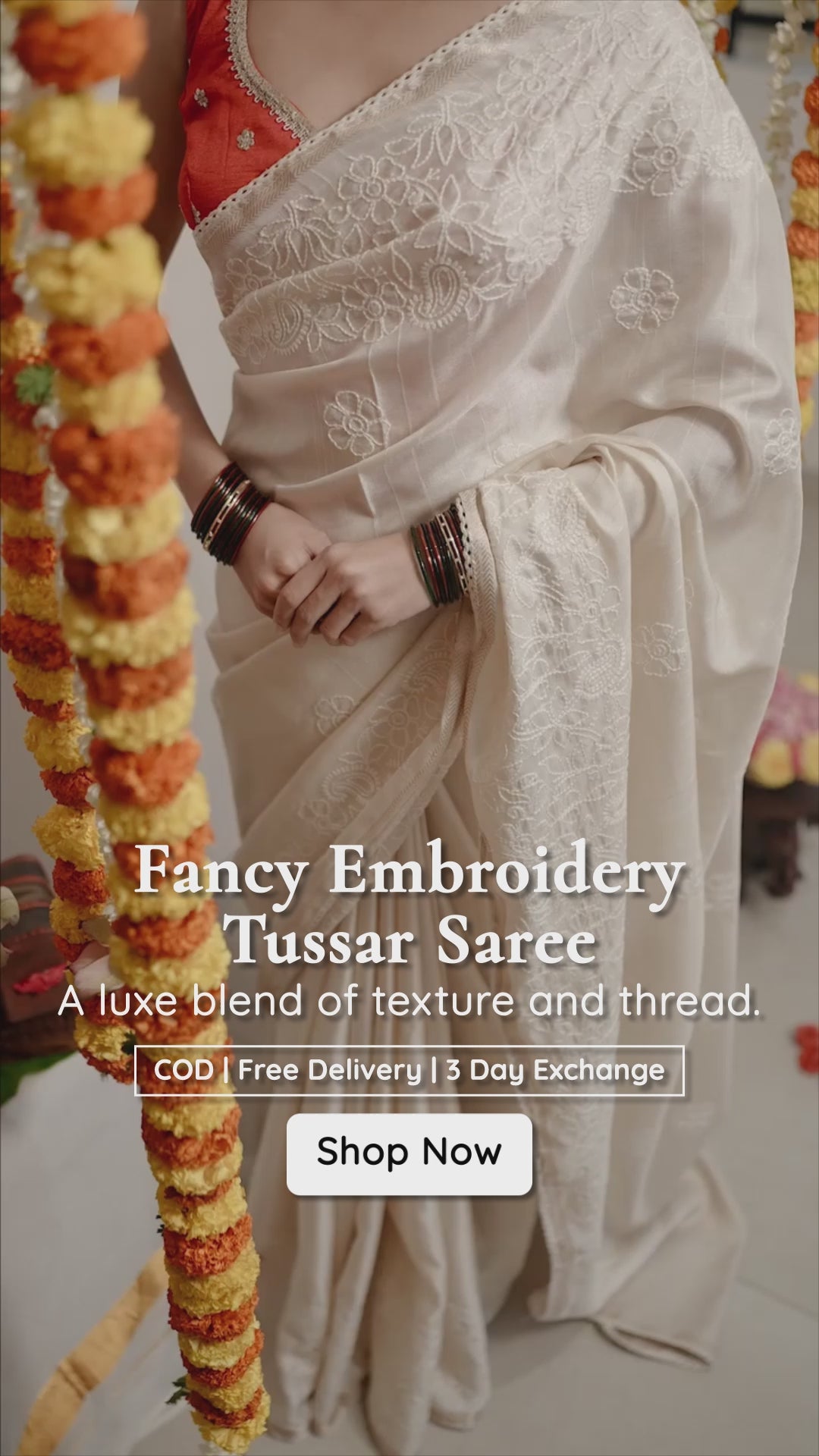 Cream Fancy Embroidery Tussar Saree