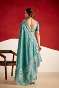 Embroidered Blue Tussar Blend Saree