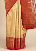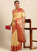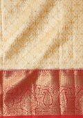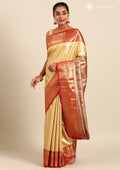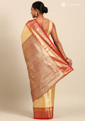 Celebrate timeless tradition with the Yellow and Red Kanchipuram Saree, crafted from premium polyester blended fabric for a graceful drape and radiant finish. The vibrant yellow base paired with classic red accents creates a look that's rich in cultural elegance.