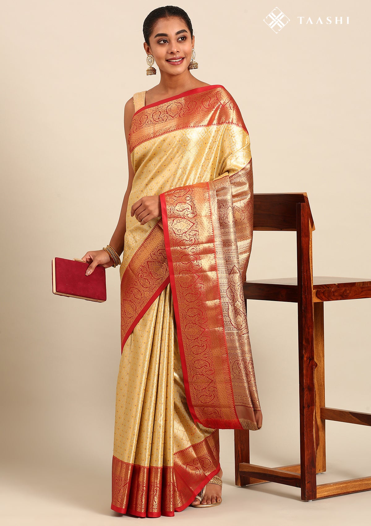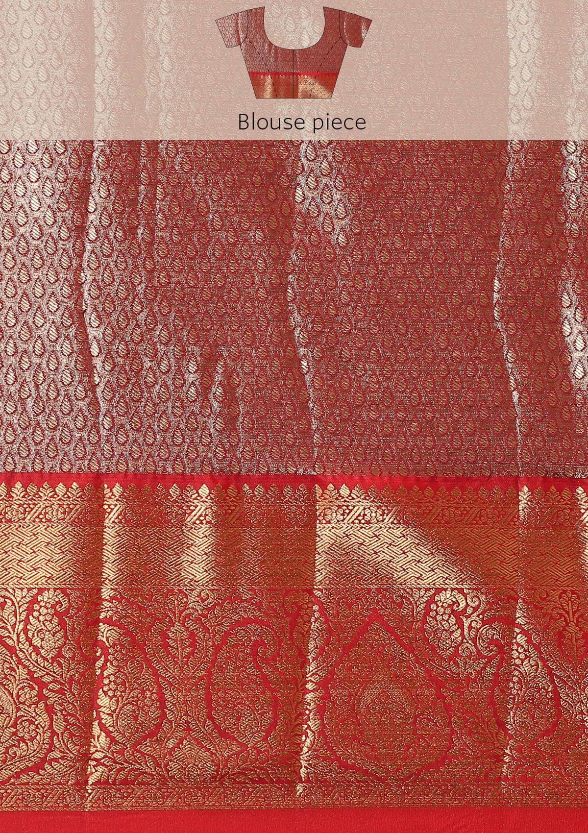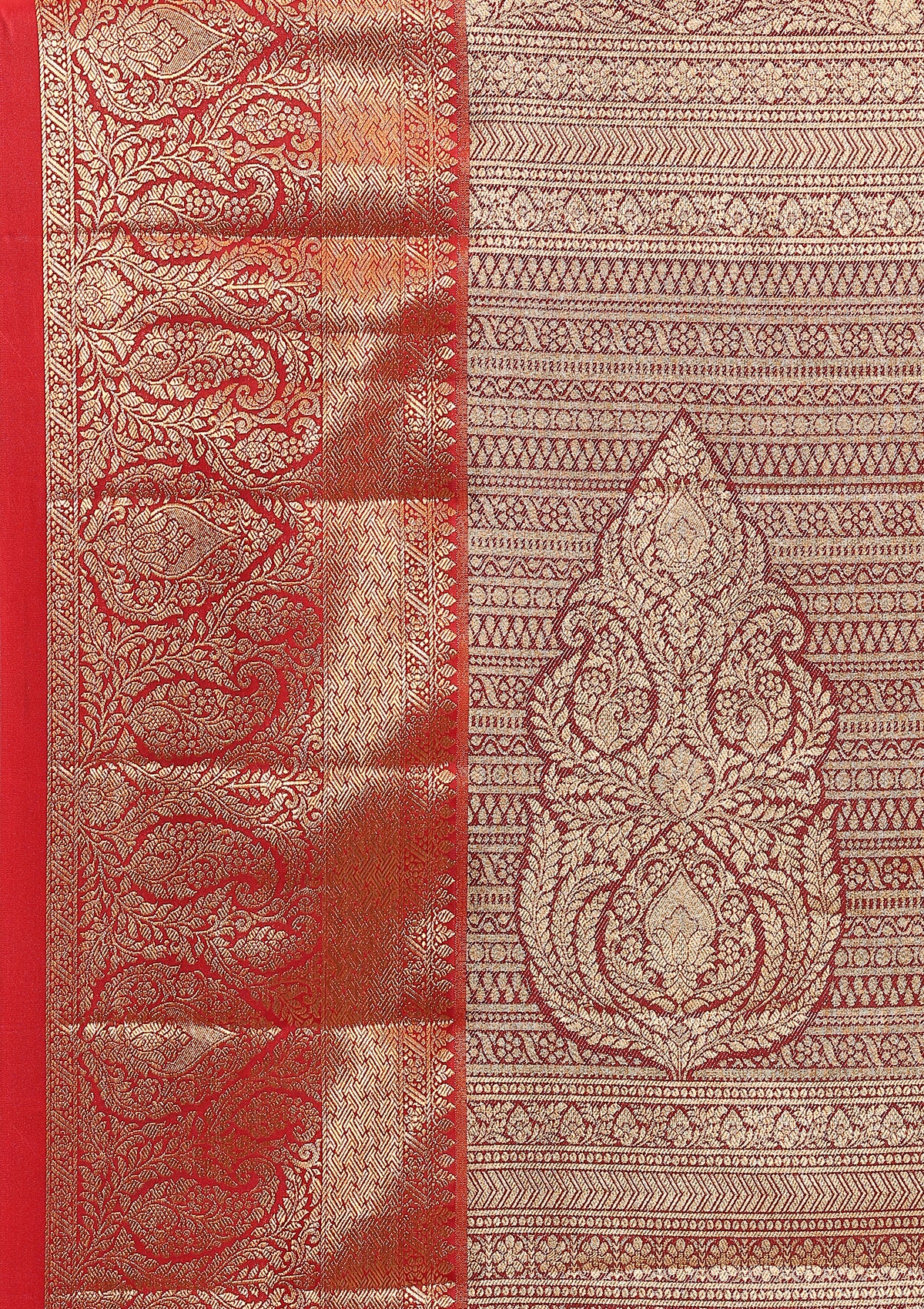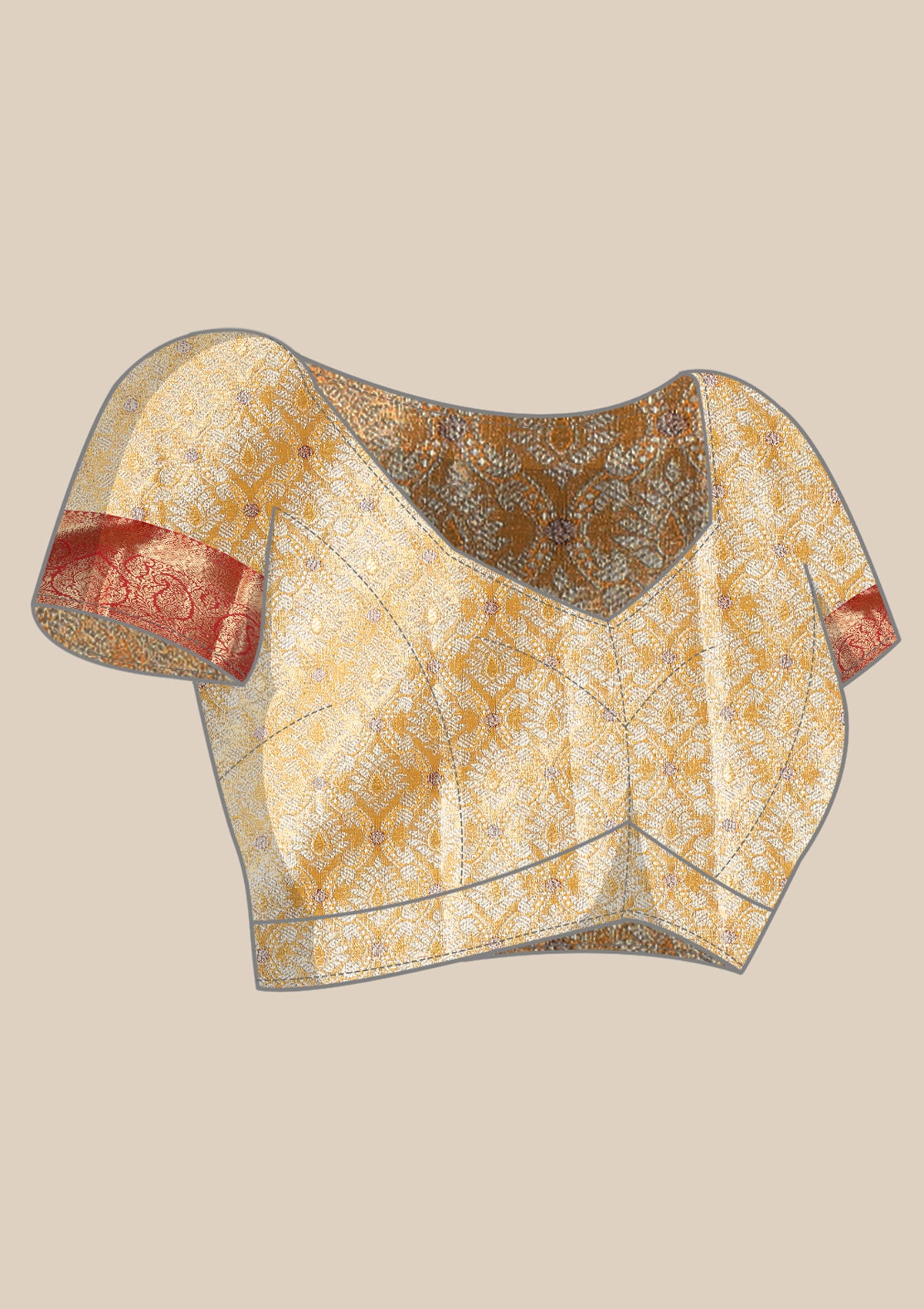- A richly woven pallu enhances the overall grandeur with fine detailing