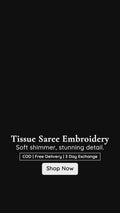 Exude graceful simplicity with the Off White Tissue Saree, a timeless piece that balances subtle elegance with exquisite embroidery. Crafted from lightweight polyester blended tissue fabric, this saree shines in a classic off white shade perfect for refined occasions.