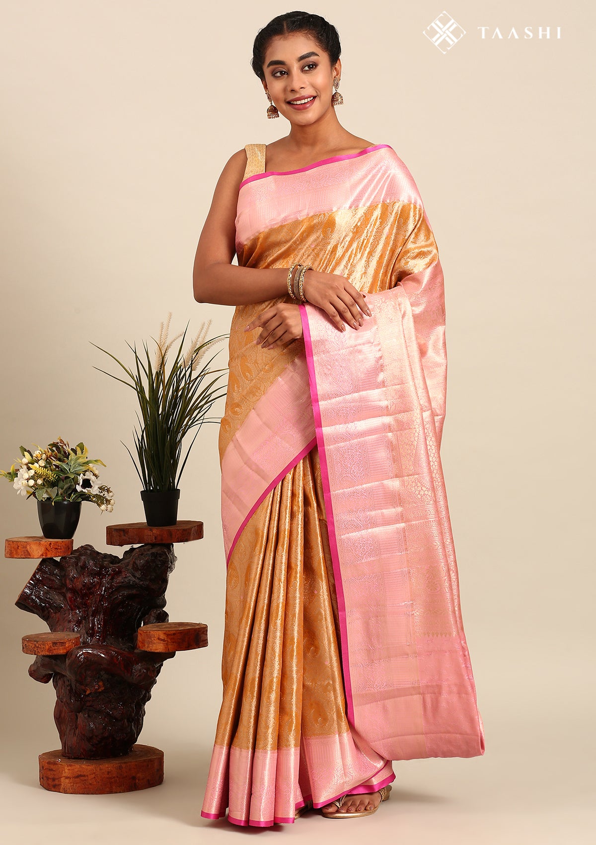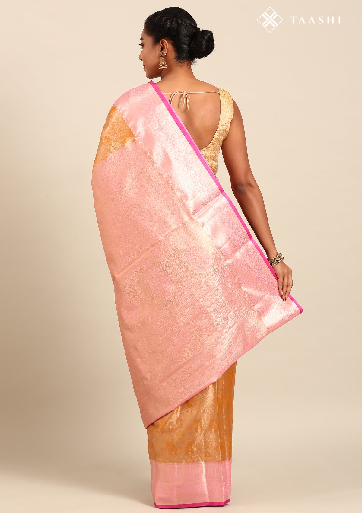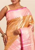 Golden And Light Pink Kanchipuram Saree