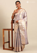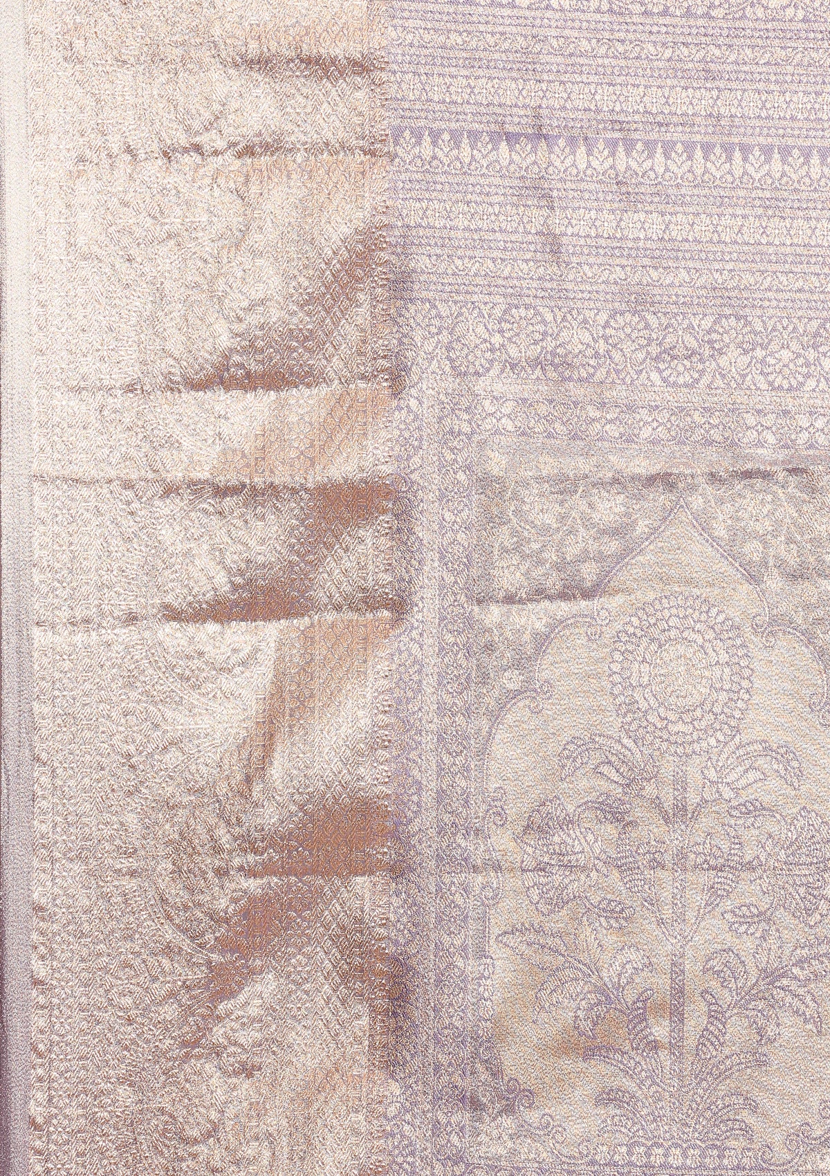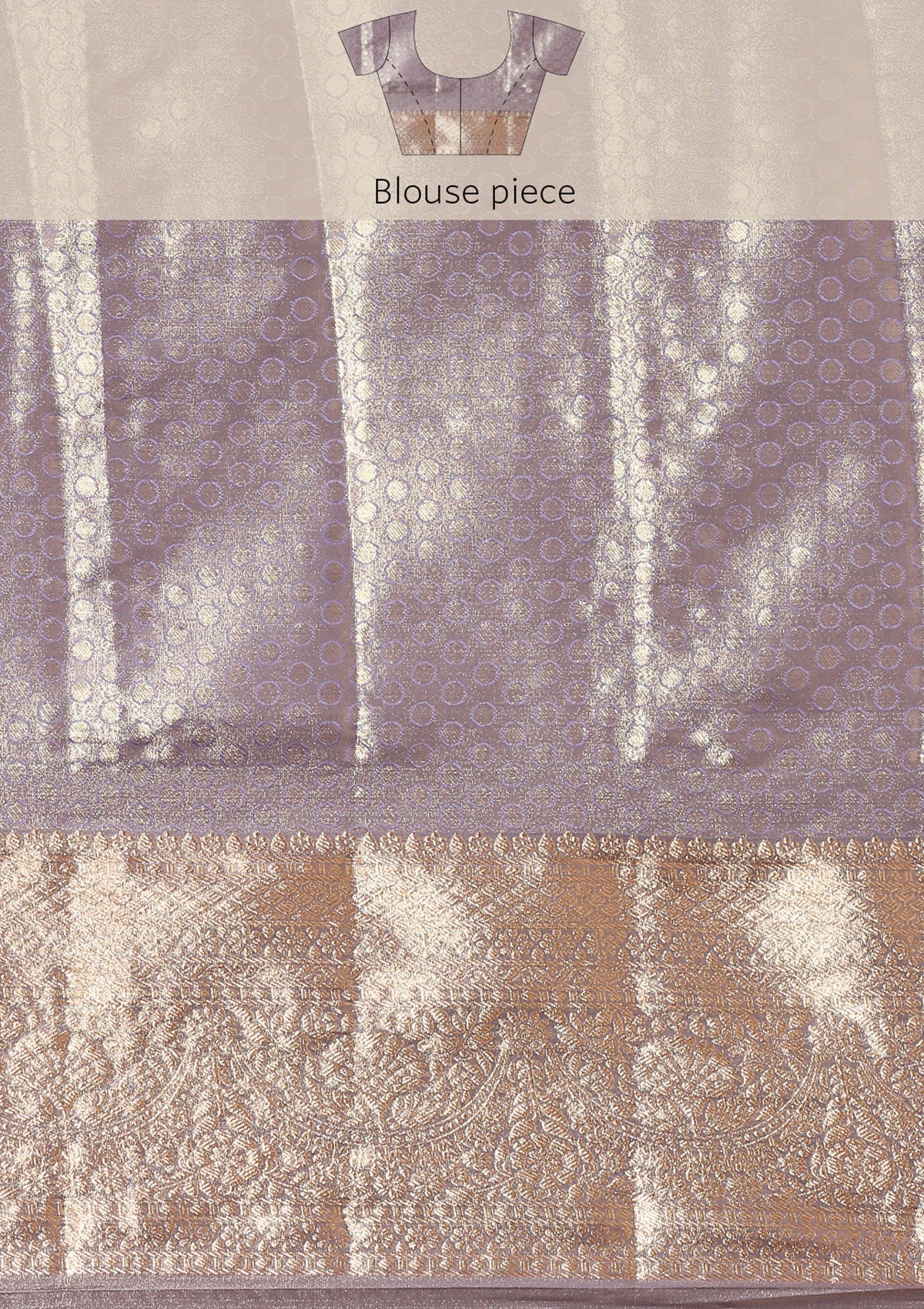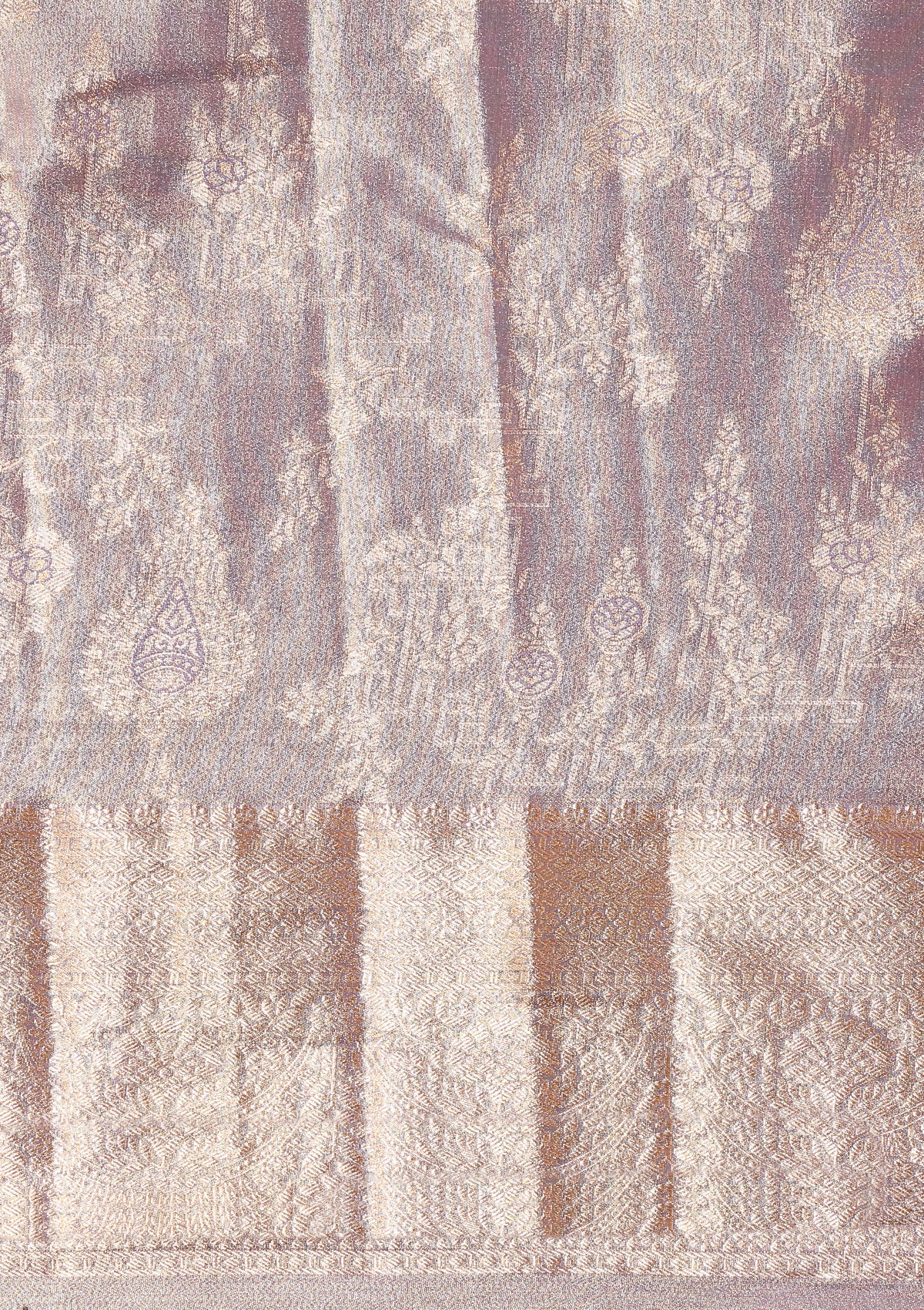 Mauve Floral Pattern Tissue Brocade Kanchipuram Saree