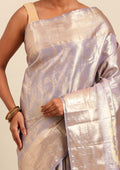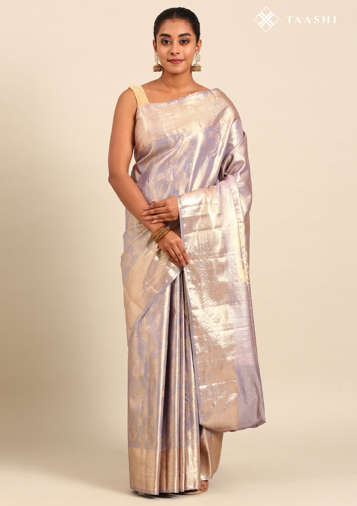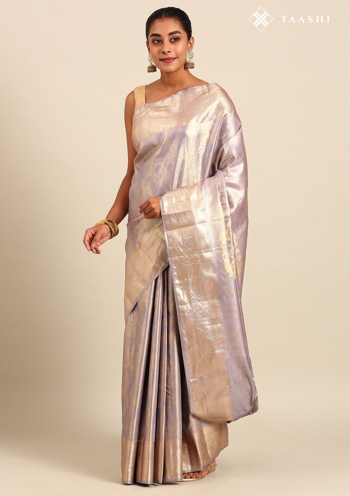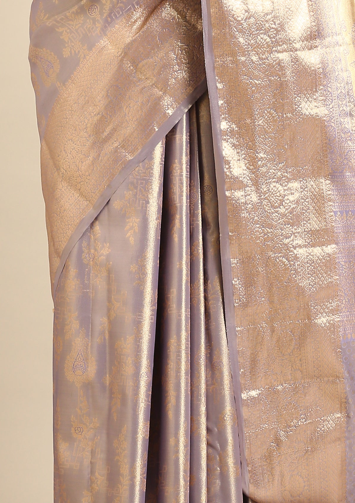 Mauve Floral Pattern Tissue Brocade Kanchipuram Saree