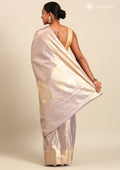 Draped in a soft mauve hue, this polyester blended tissue saree exudes sophistication and timeless beauty.