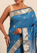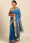 Experience timeless grace with the Dark Blue Butta Kanchipuram Saree crafted from premium Polyester Blended fabric.