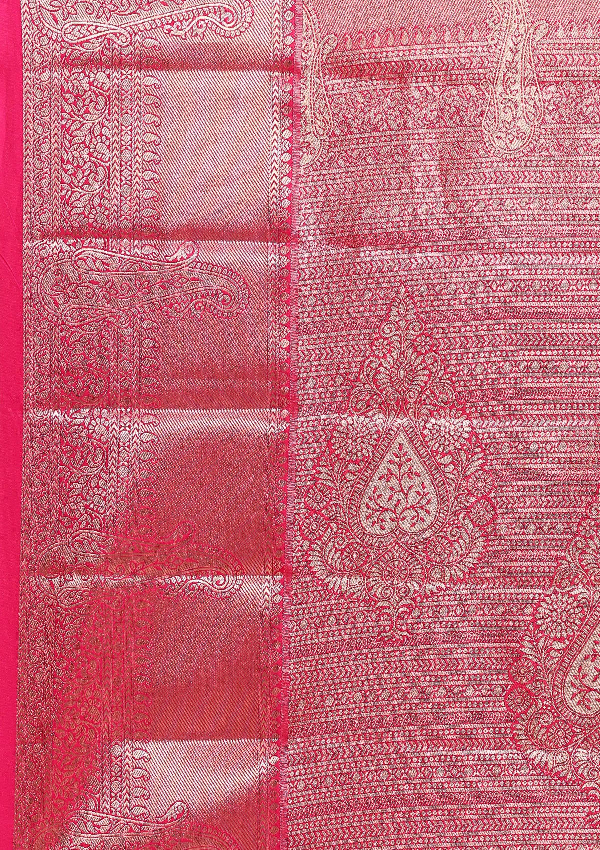 - The rich pallu enhances the saree's elegance with detailed motifs