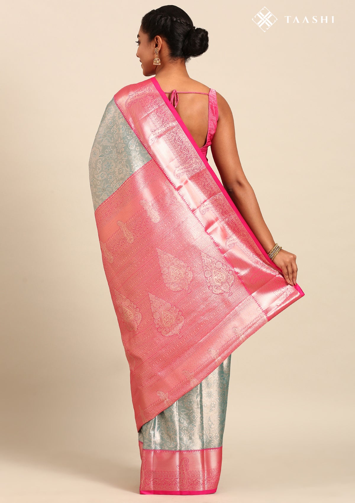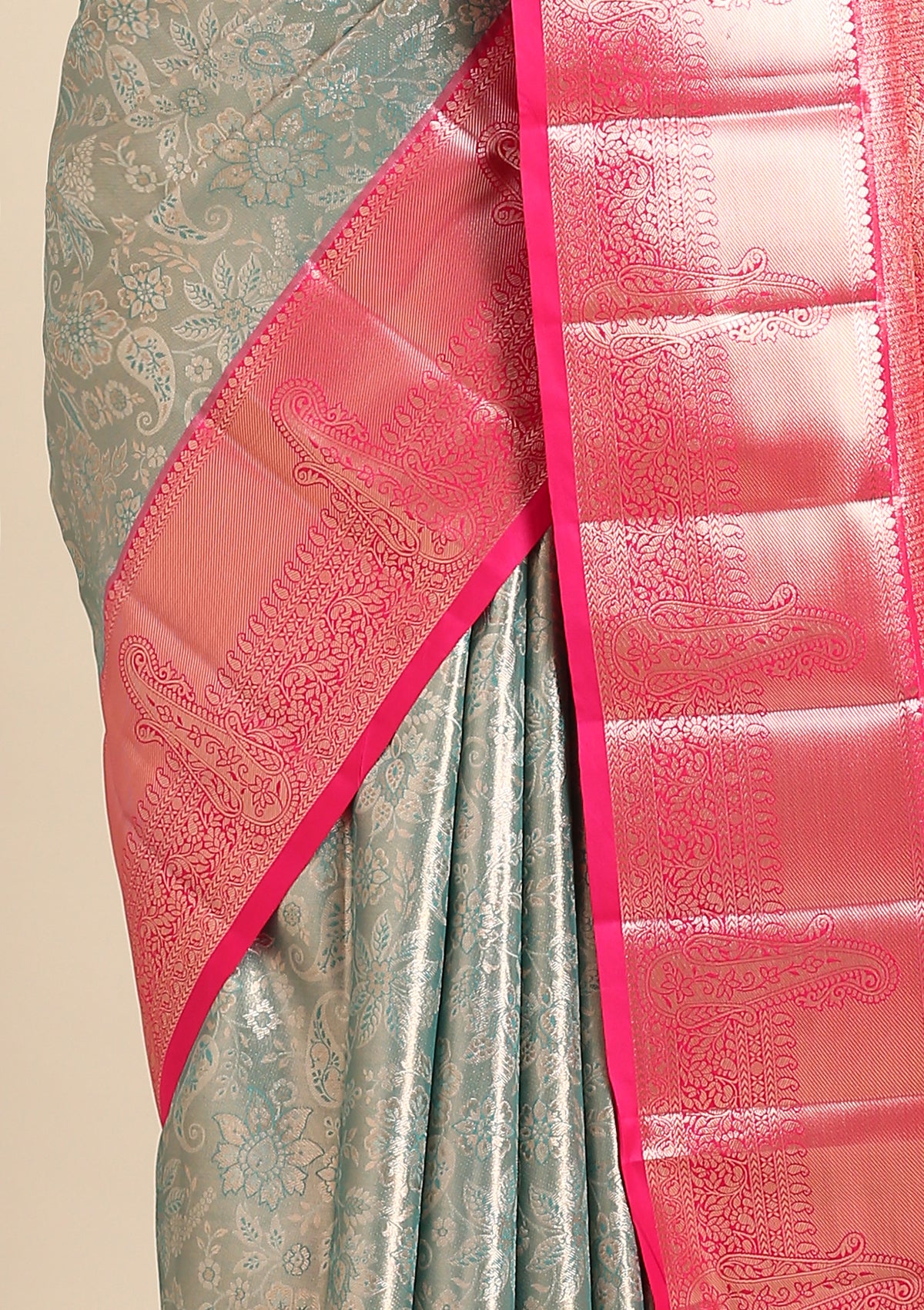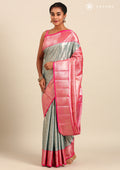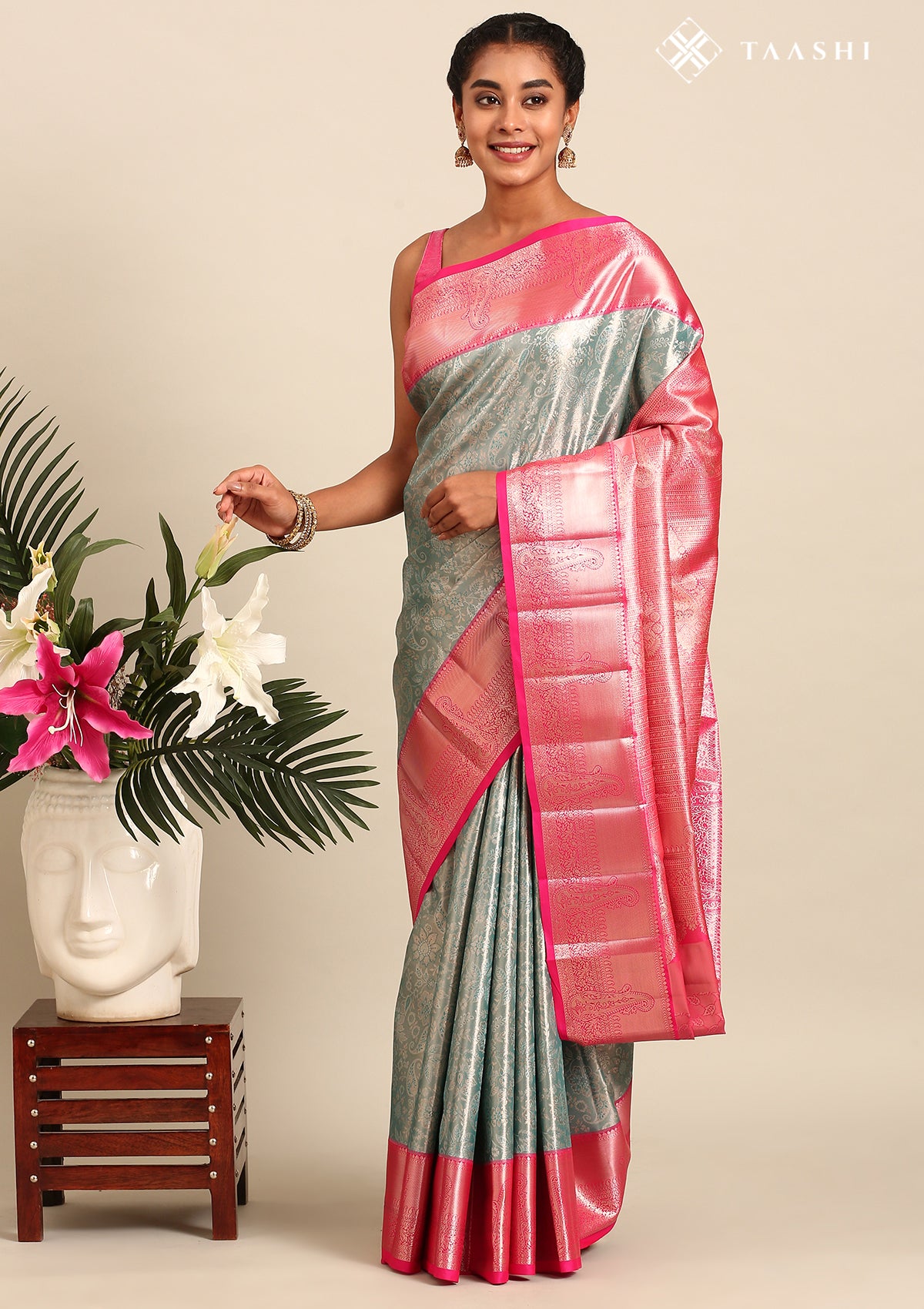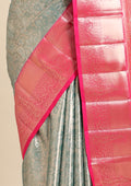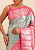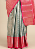 Celebrate vibrant tradition with the Teal and Pink Kanchipuram Saree, woven from premium polyester blended fabric that drapes elegantly and offers lasting comfort. This saree beautifully pairs deep teal with bright pink accents for a lively and timeless look.
