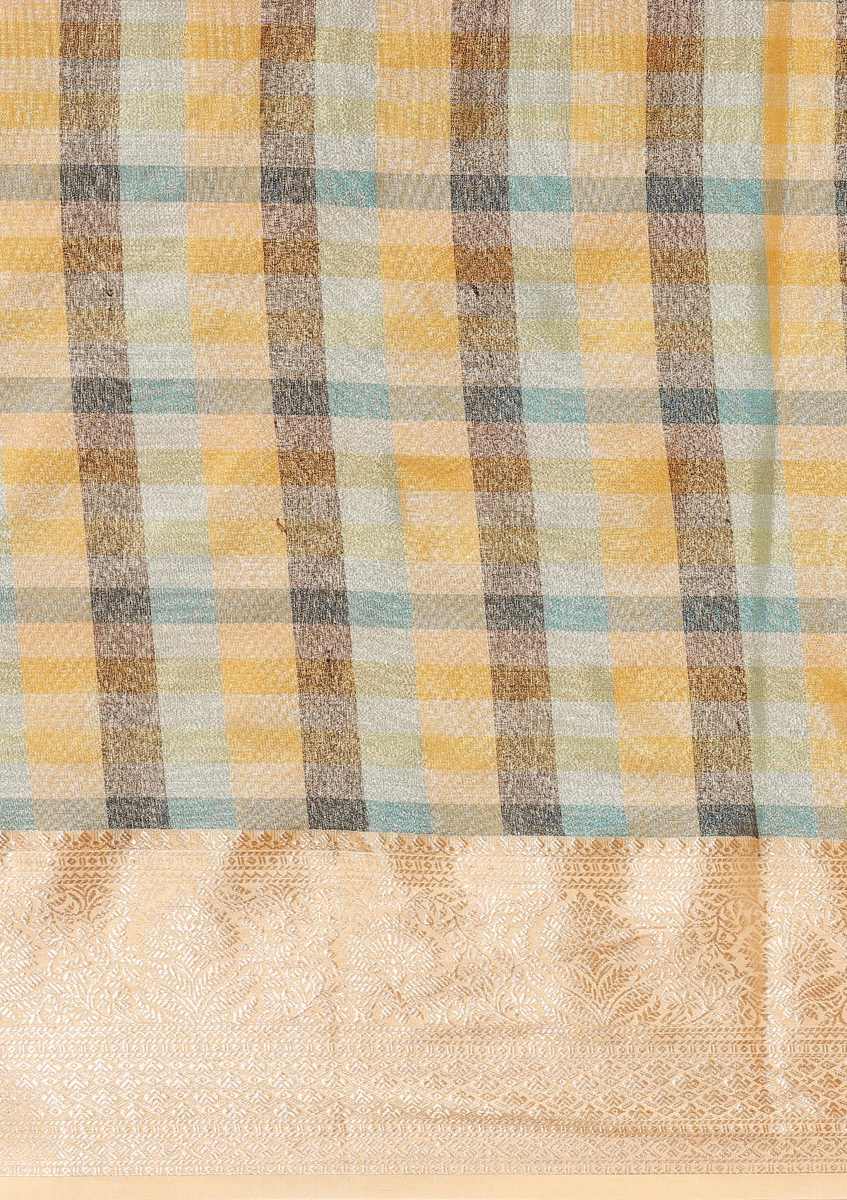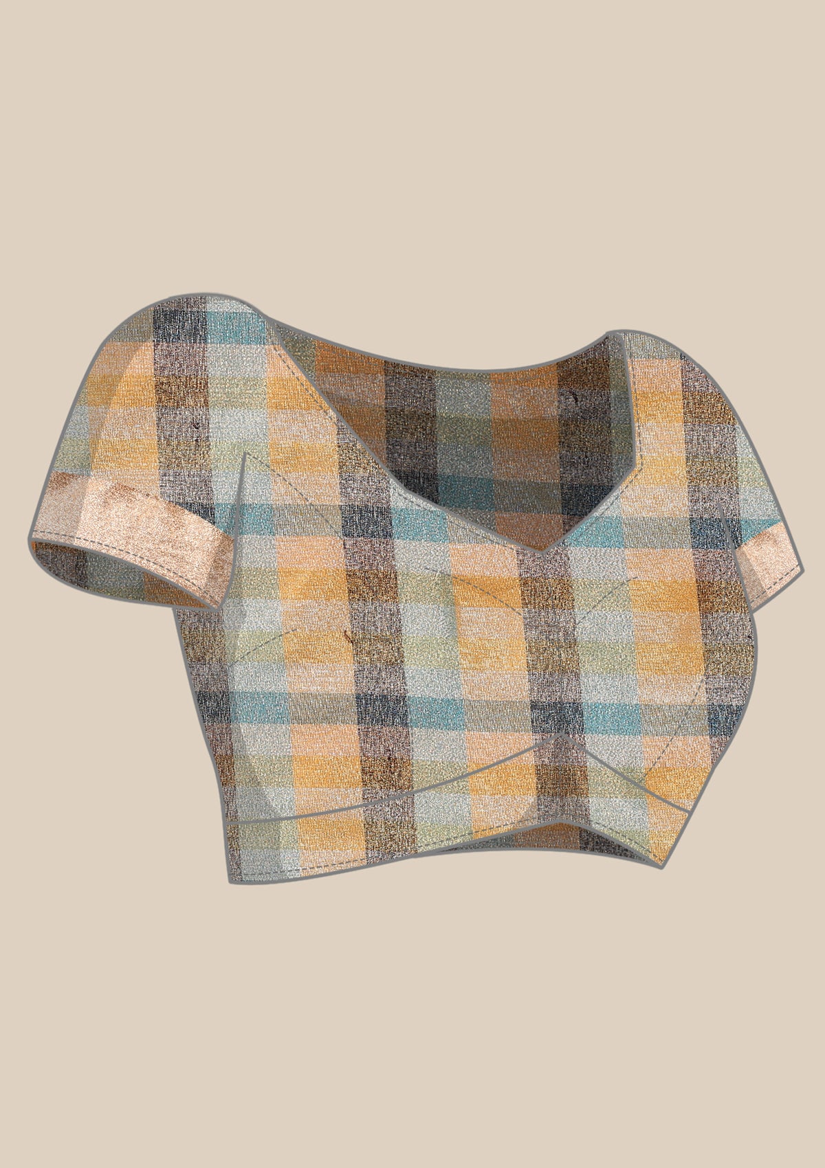 Multicolor Madras Checked Tissue Brocade Kanchipuram Saree