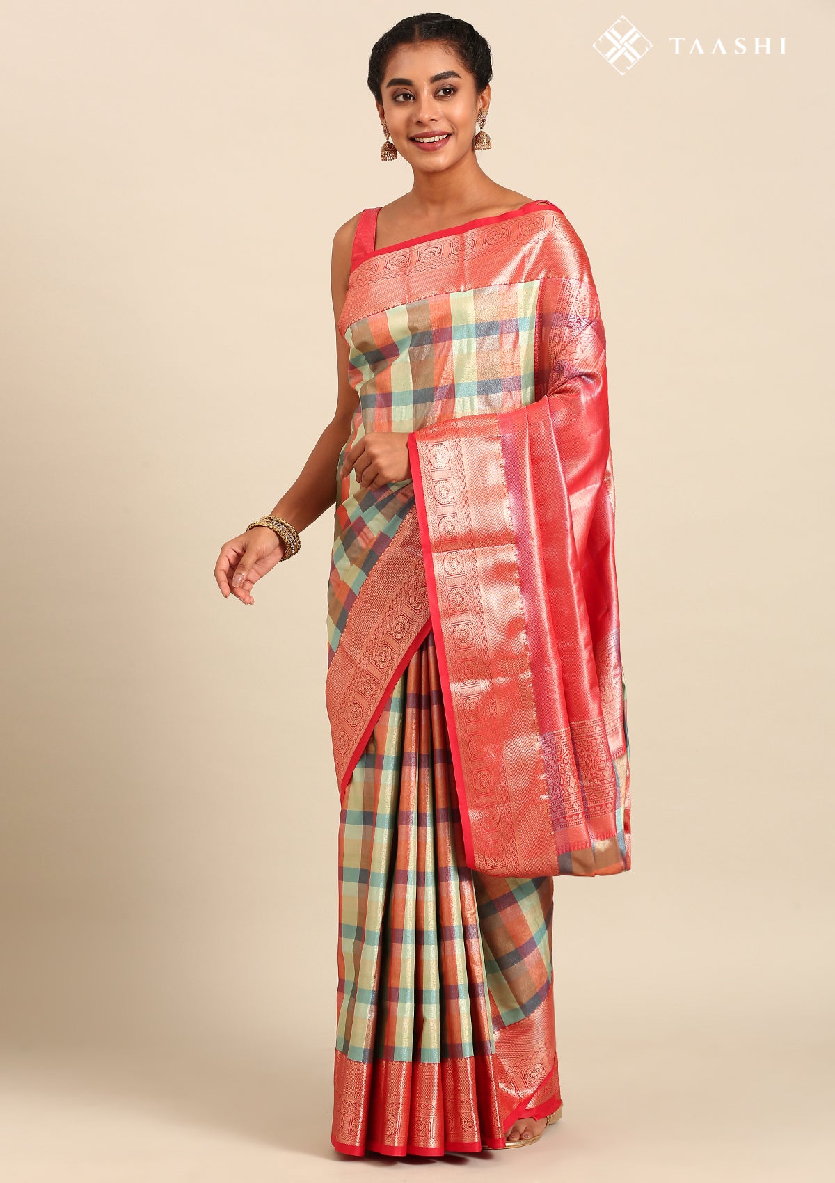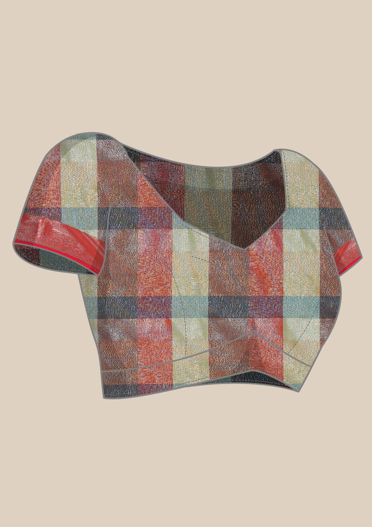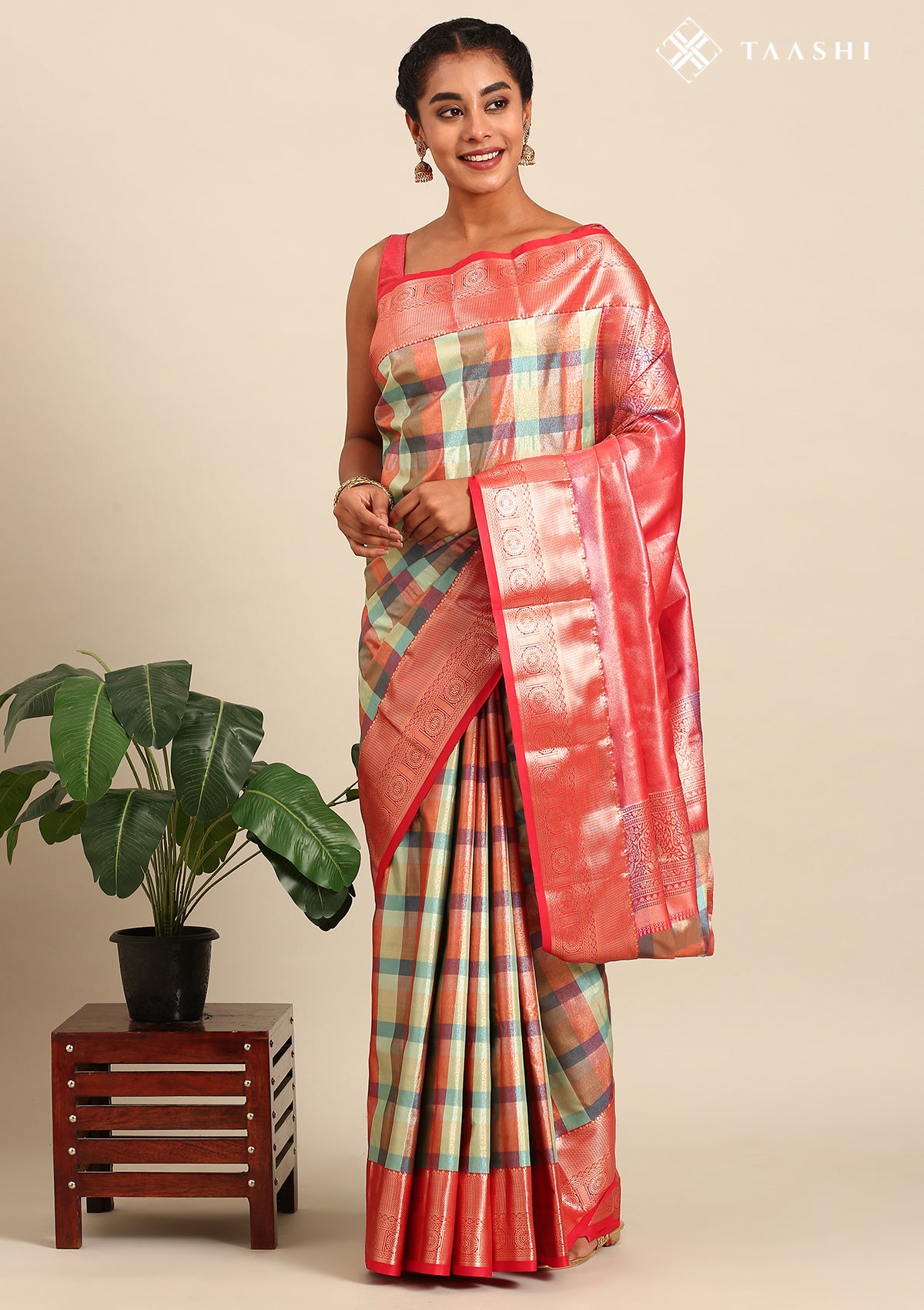 Multicolor Madras Checked Tissue Brocade Kanchipuram Saree