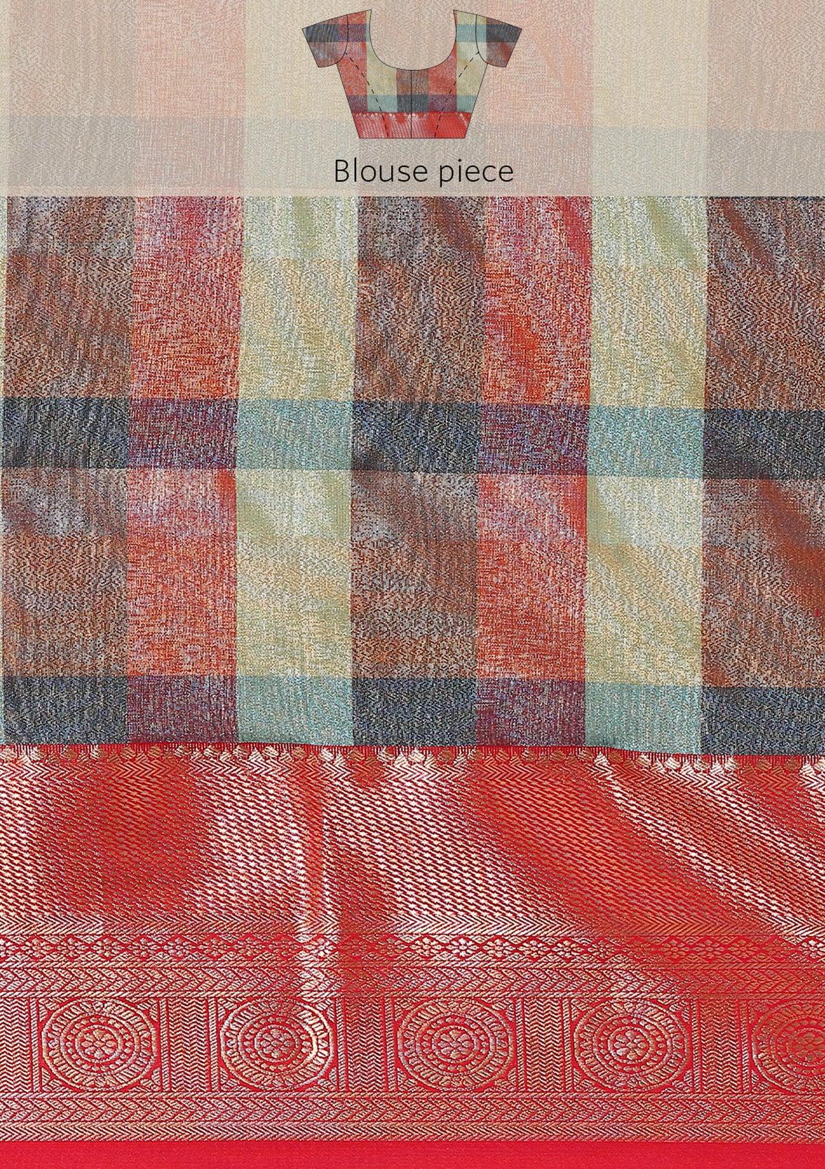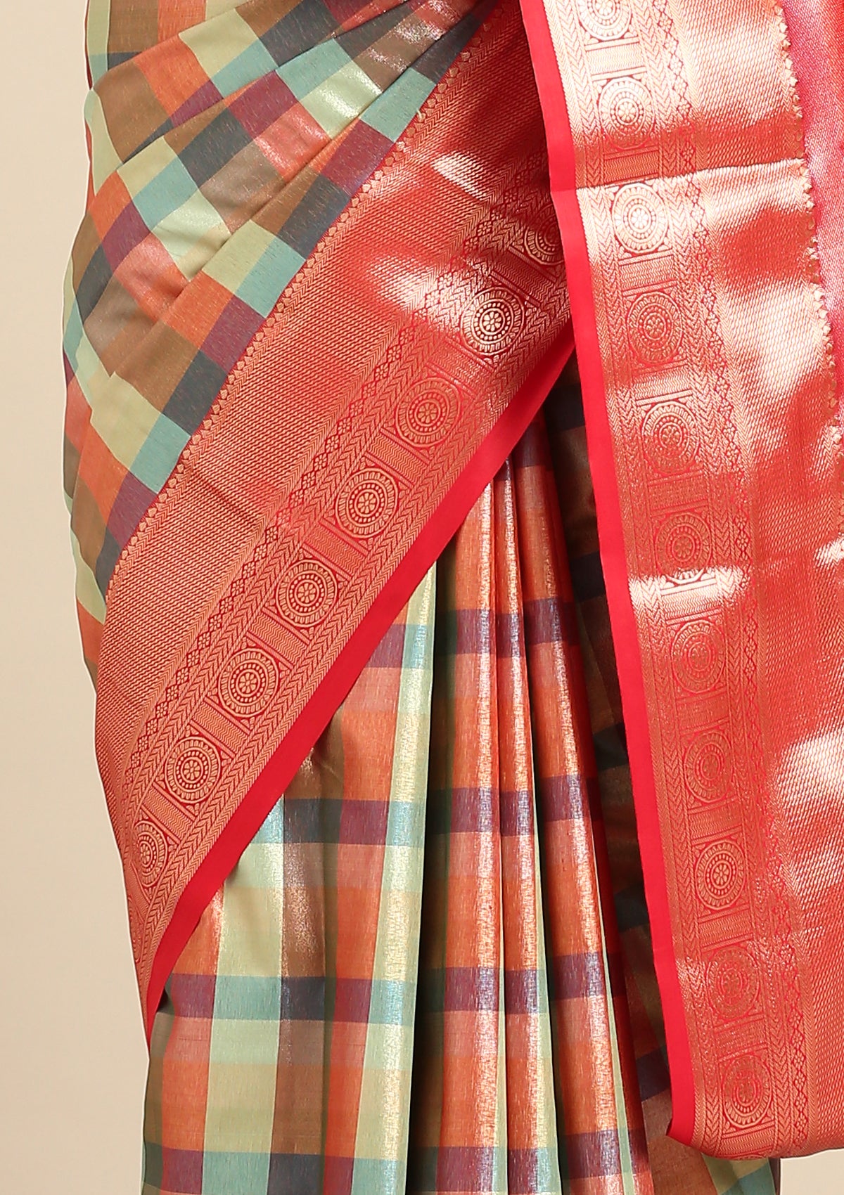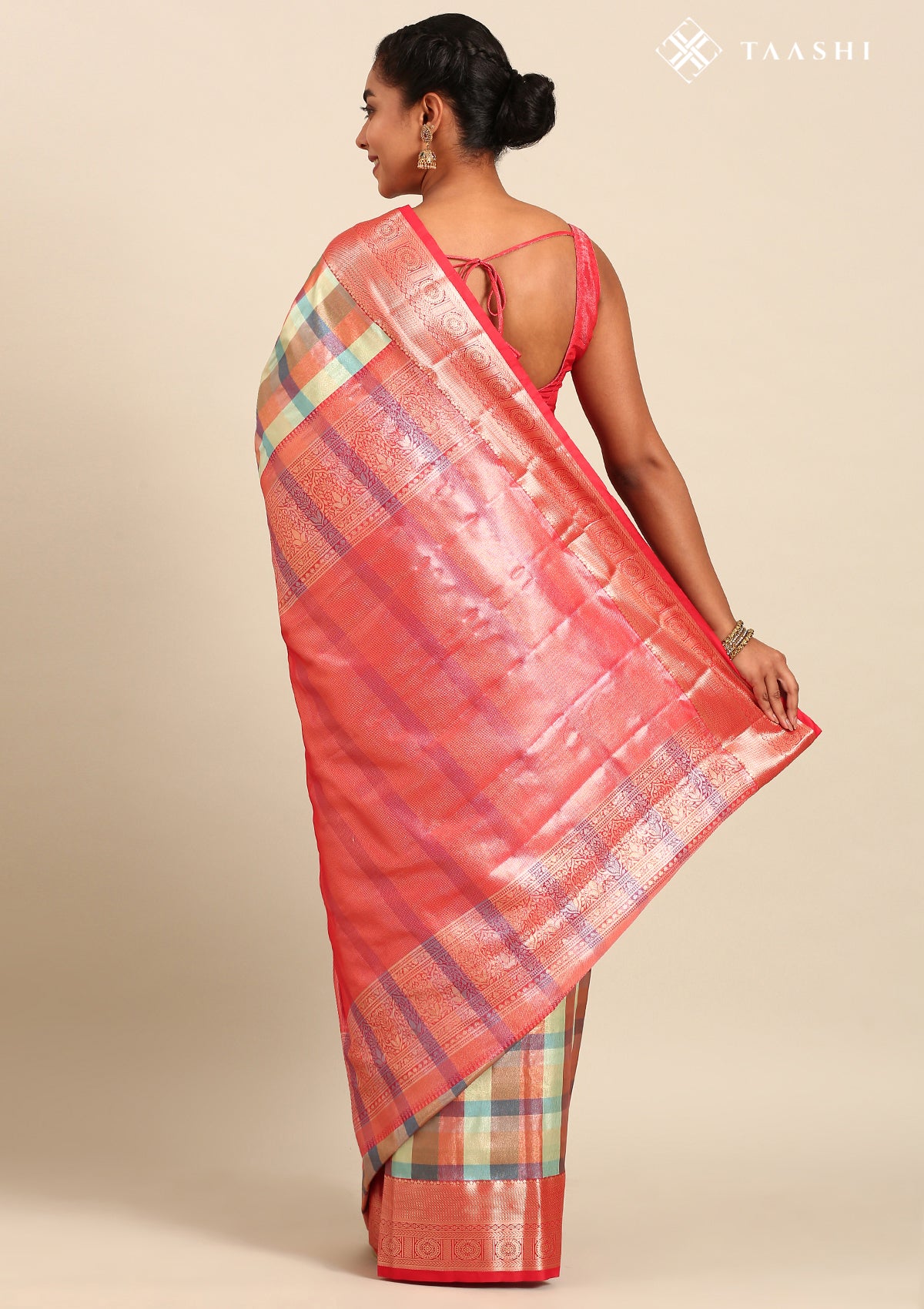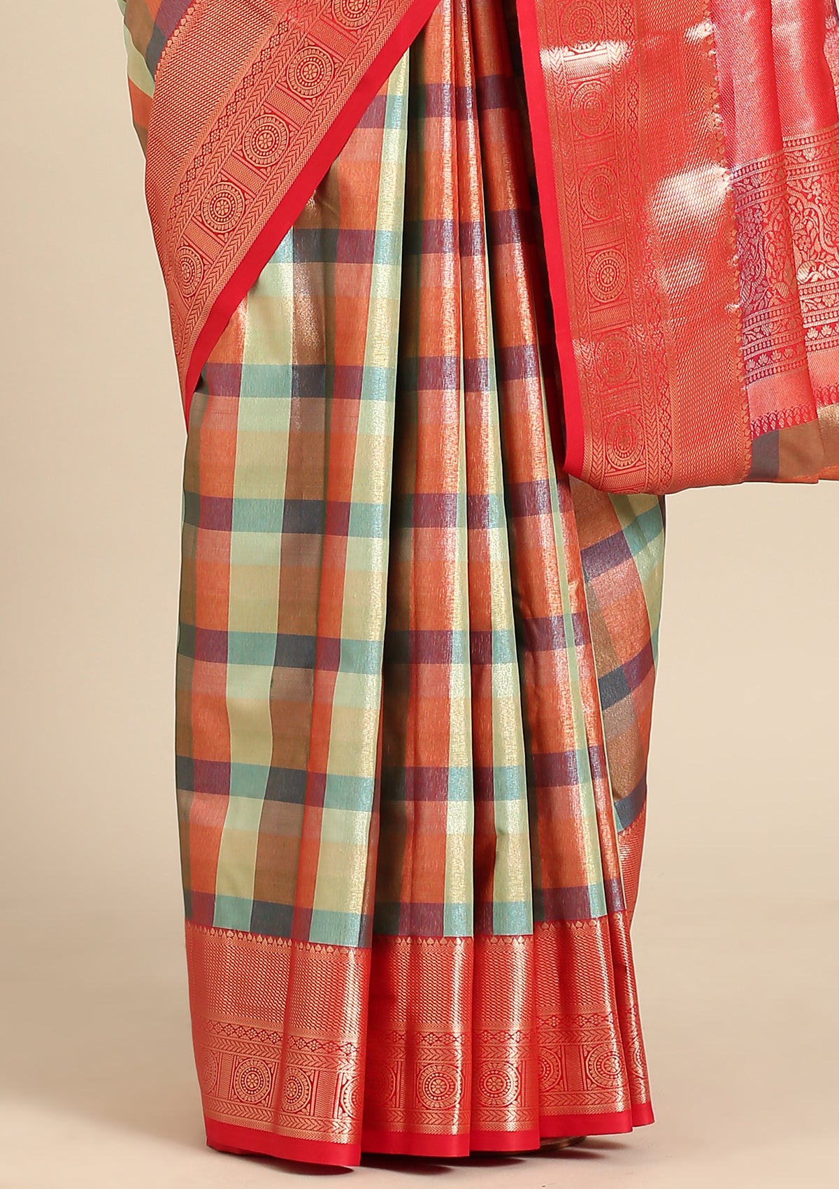 Multicolor Madras Checked Tissue Brocade Kanchipuram Saree