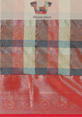 The body features rich red-colored brocade Madras checks, creating a timeless and graceful appeal.