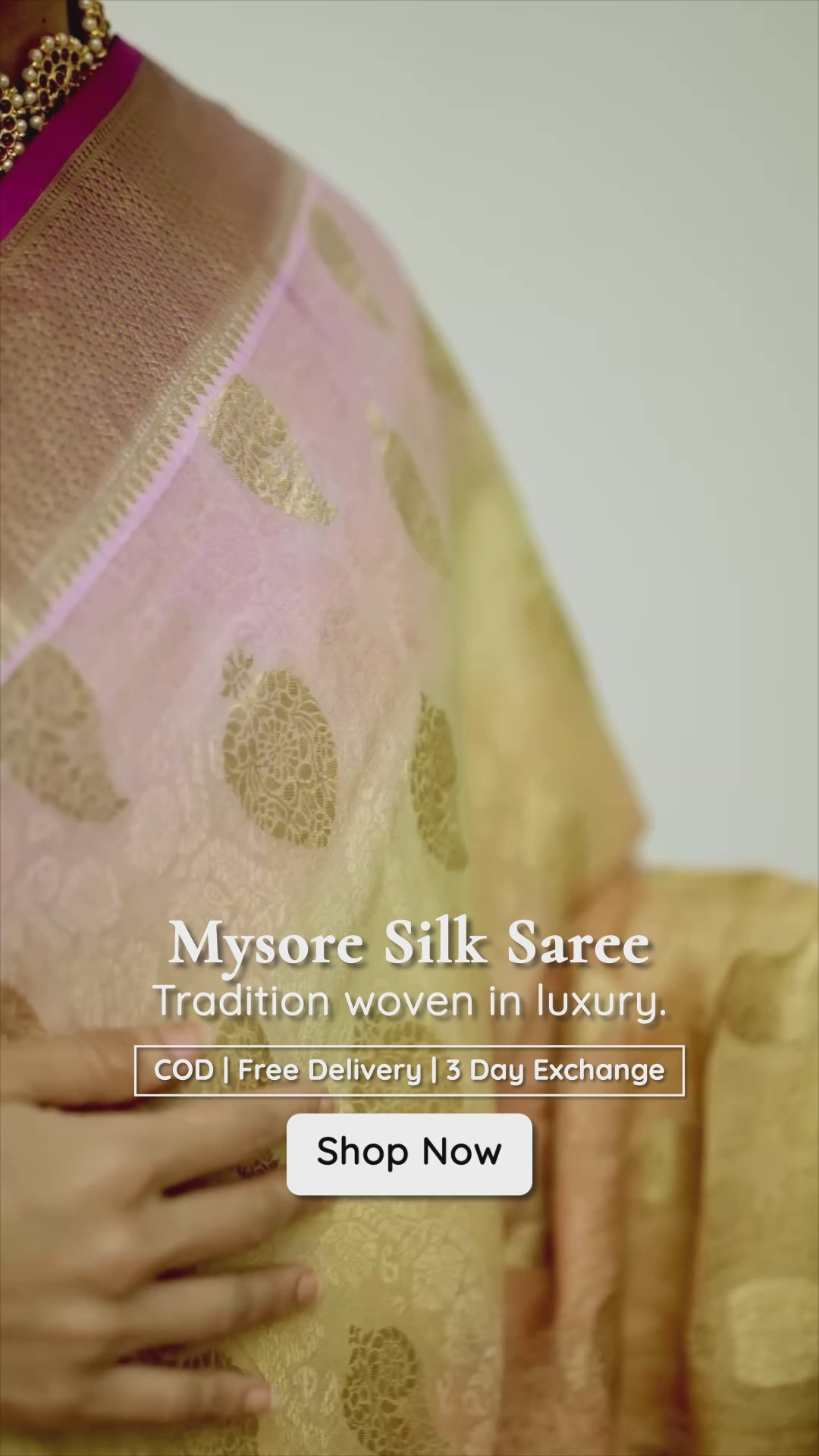Pink And Yellow Soft Color Changing Jaal Paisley Pattern Mysore Silk Saree
