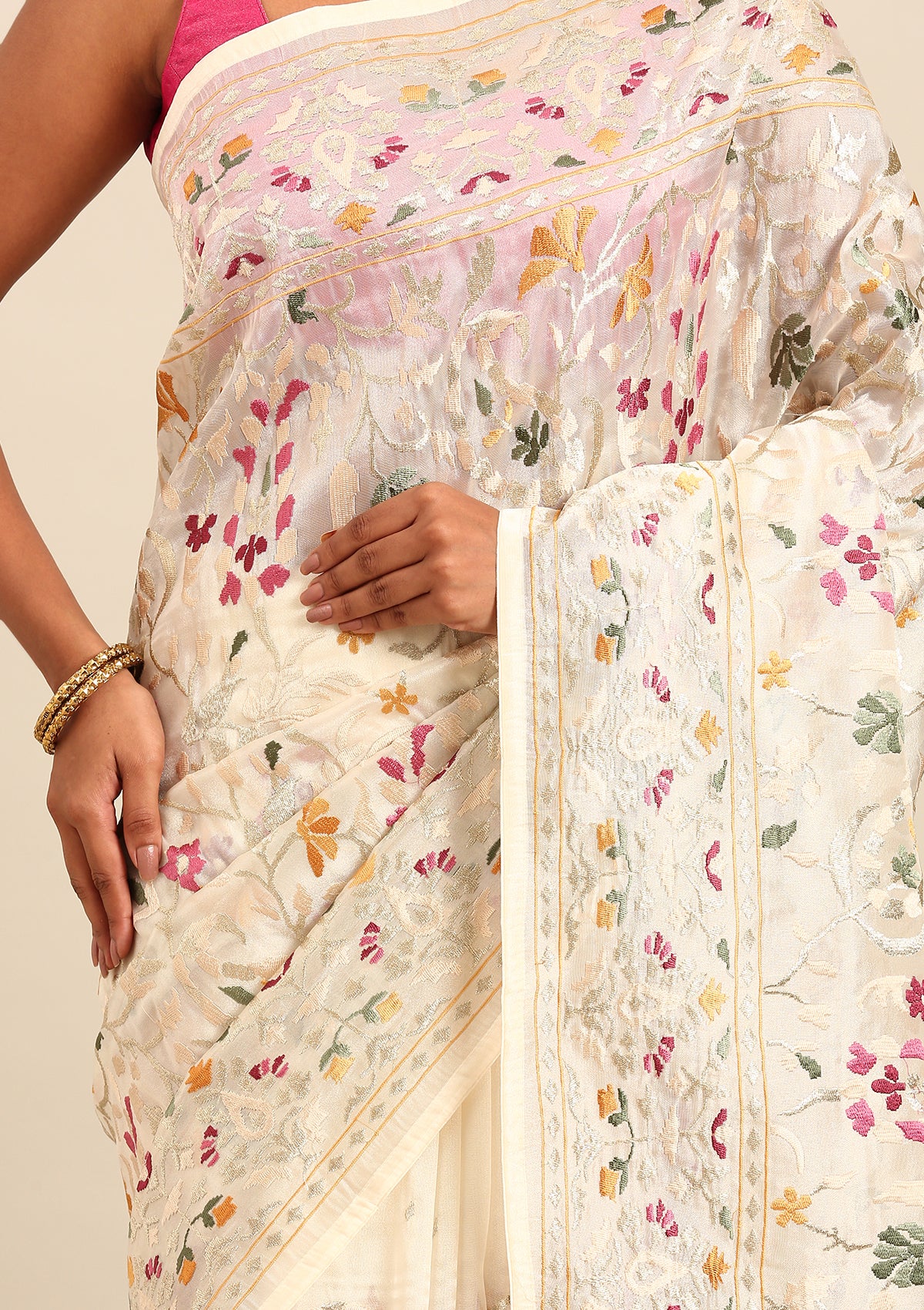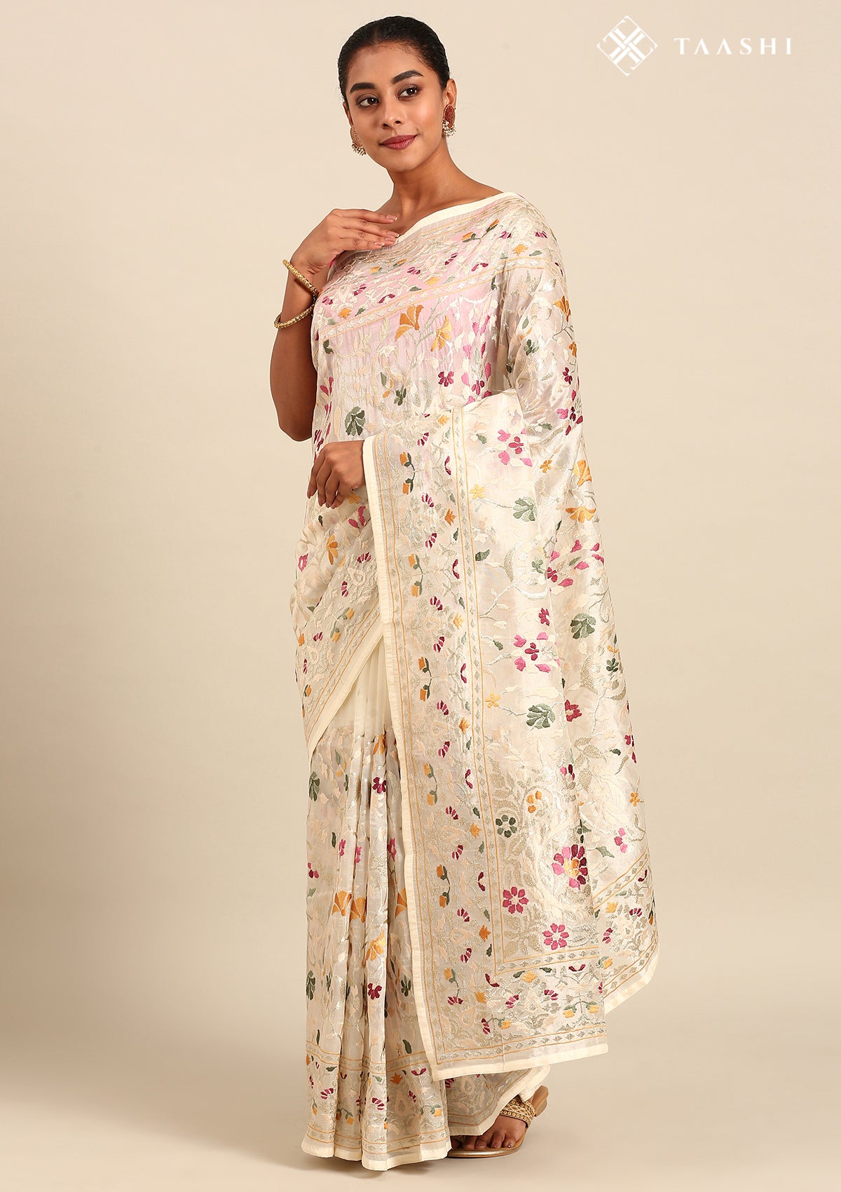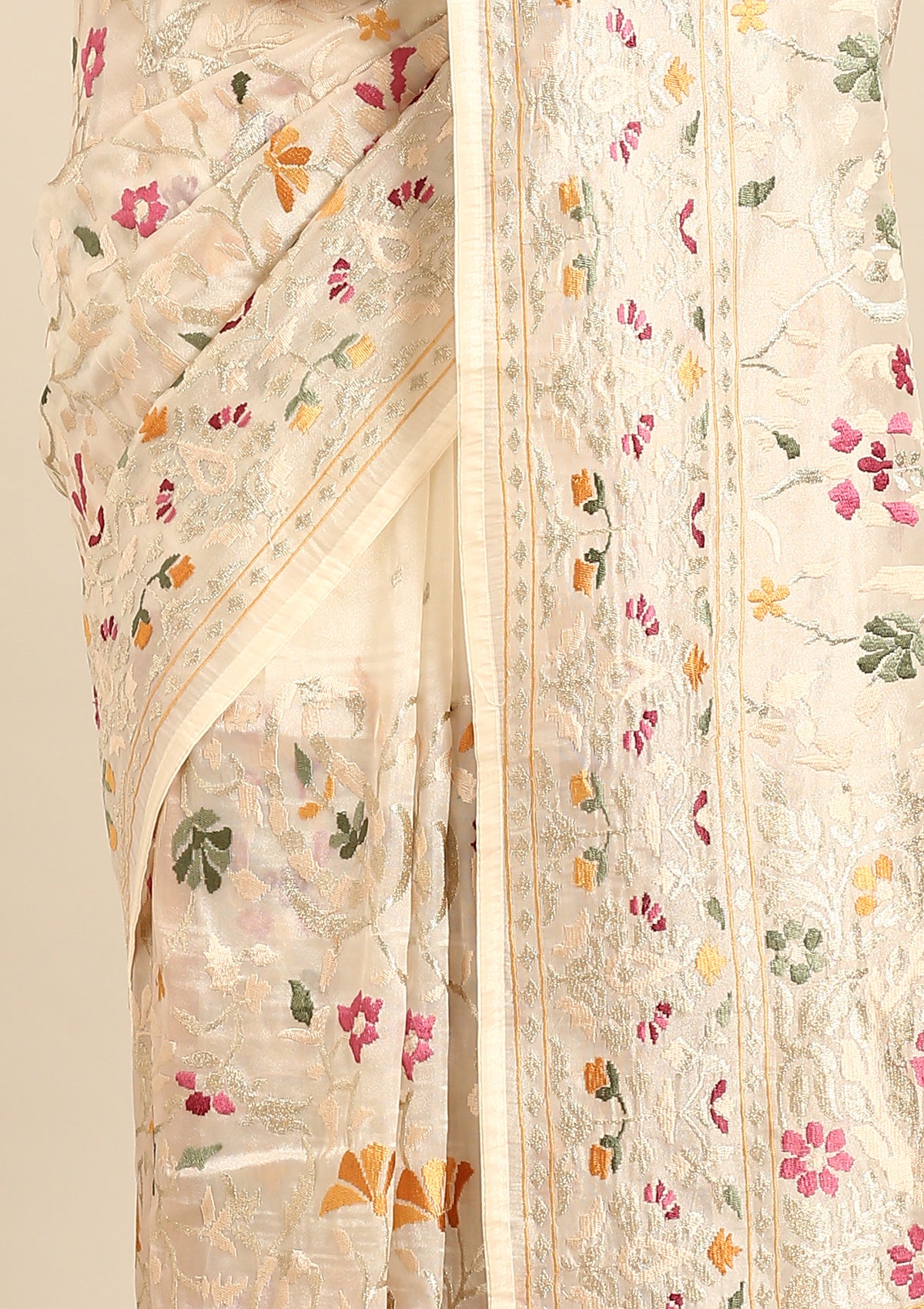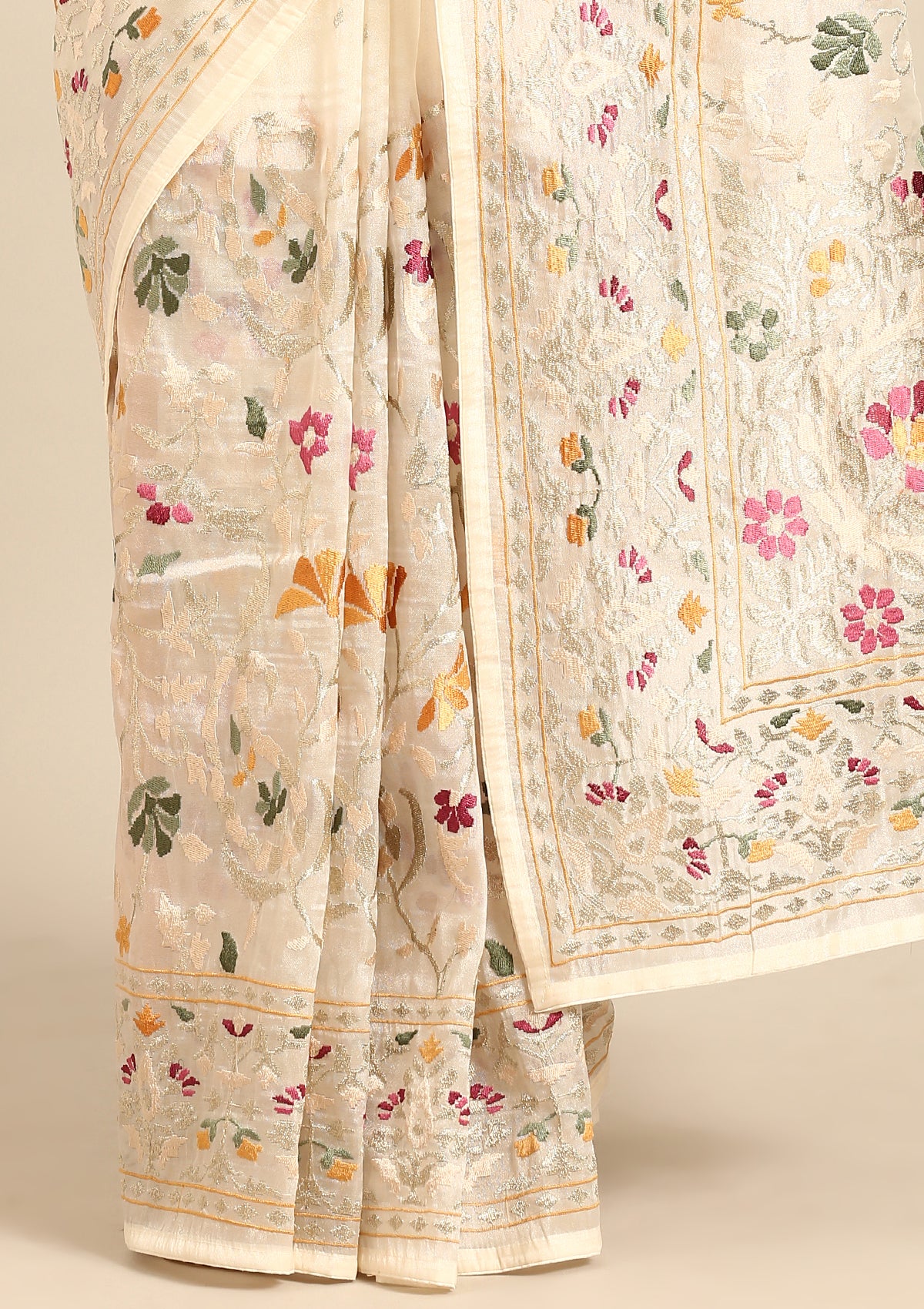 Offwhite A/O Floral Embroidered Tissue Saree