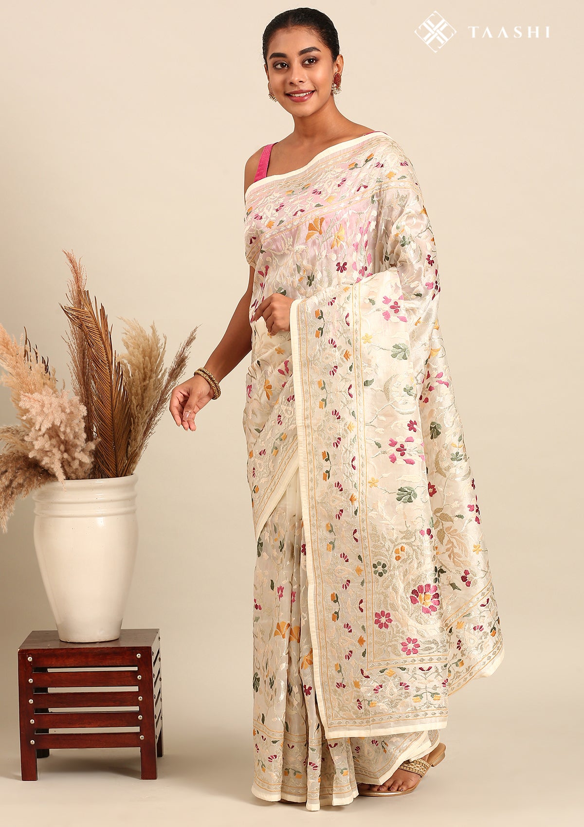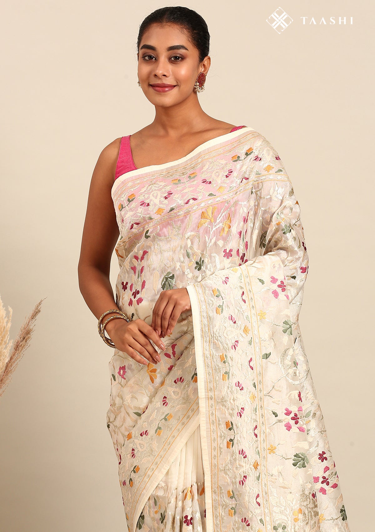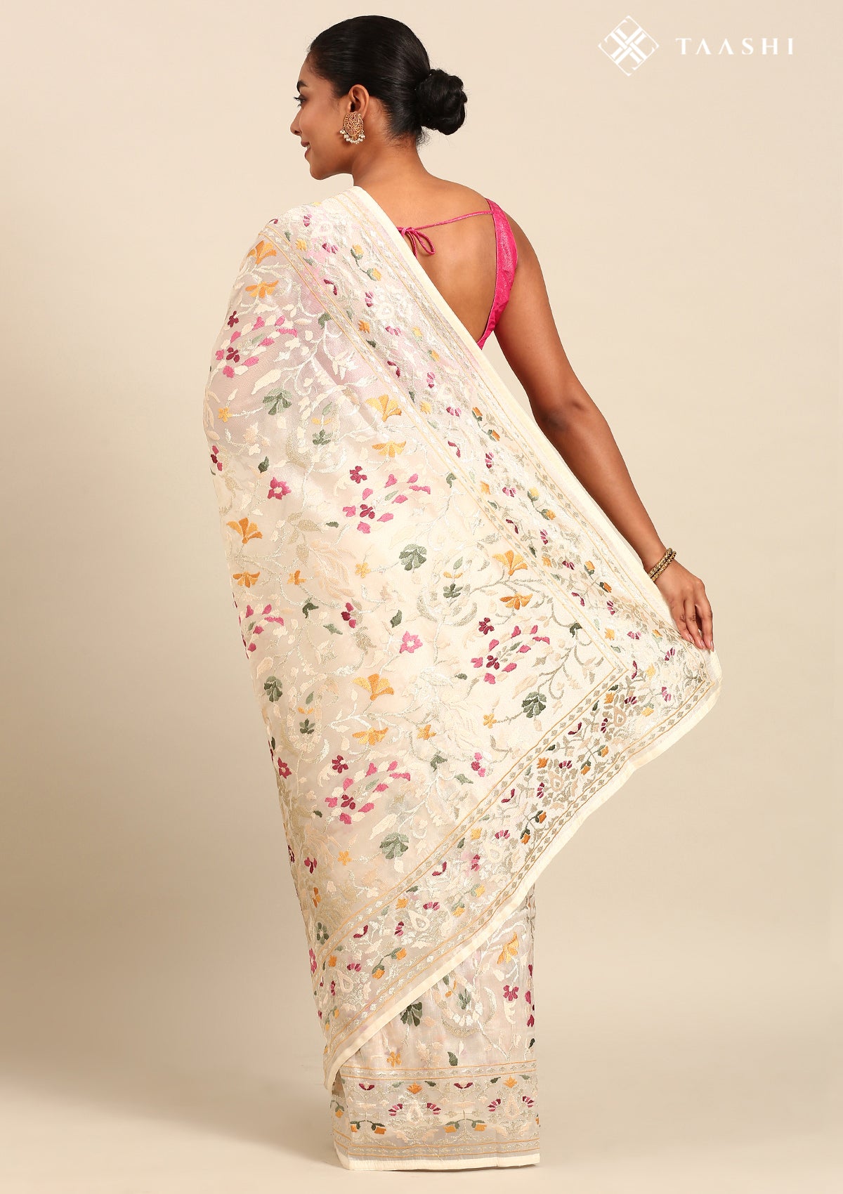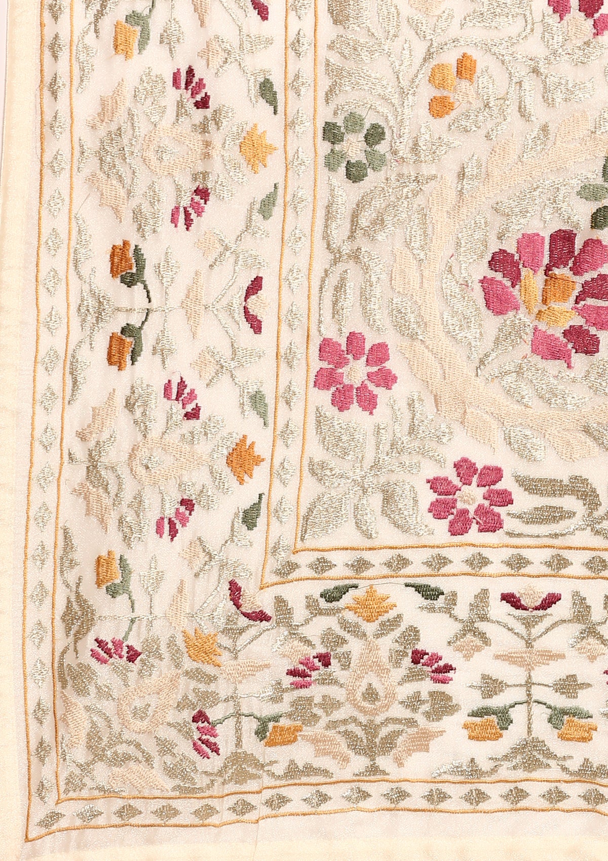 Offwhite A/O Floral Embroidered Tissue Saree