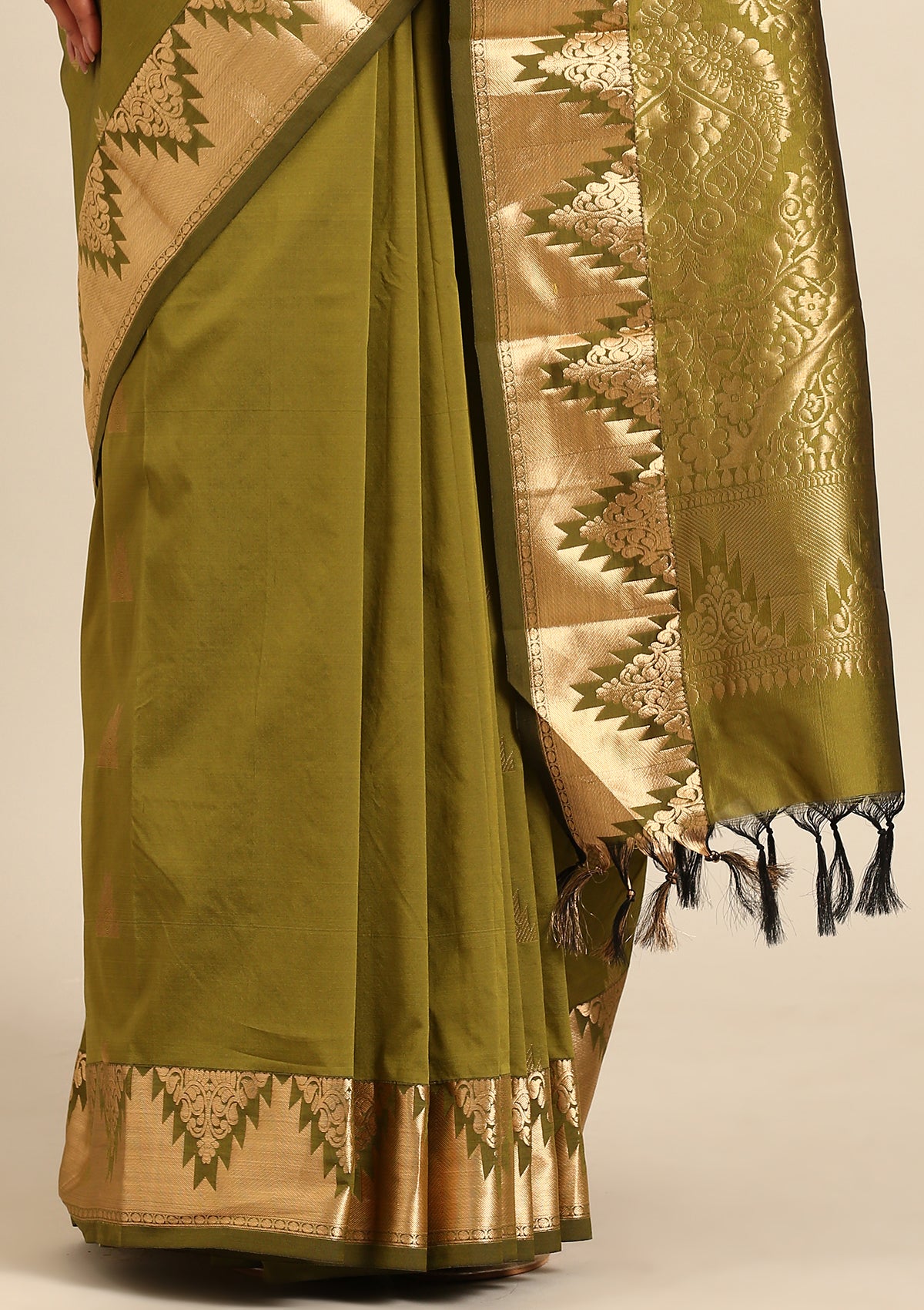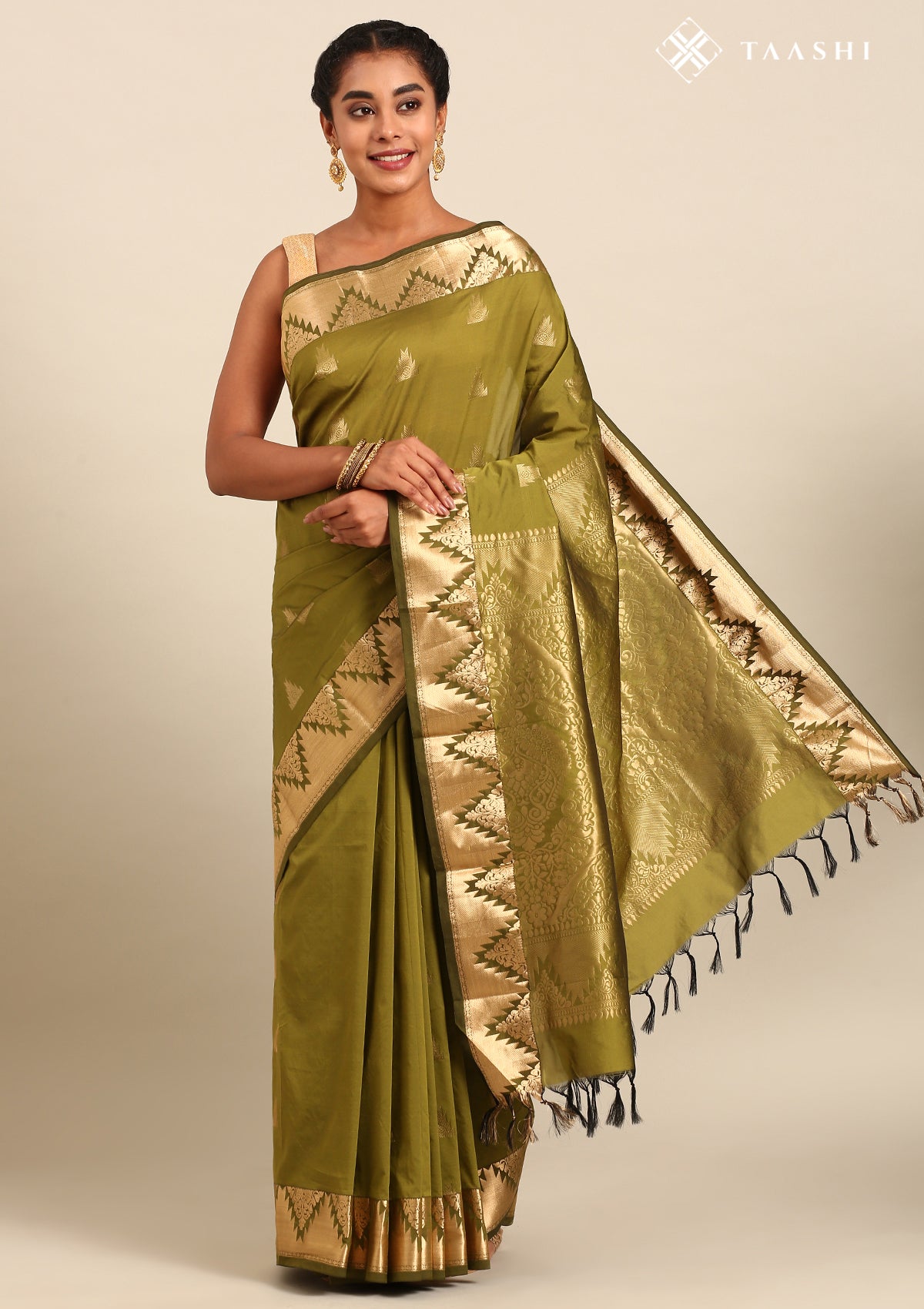 - Adorned with intricate temple butta motifs on the body for a timeless look