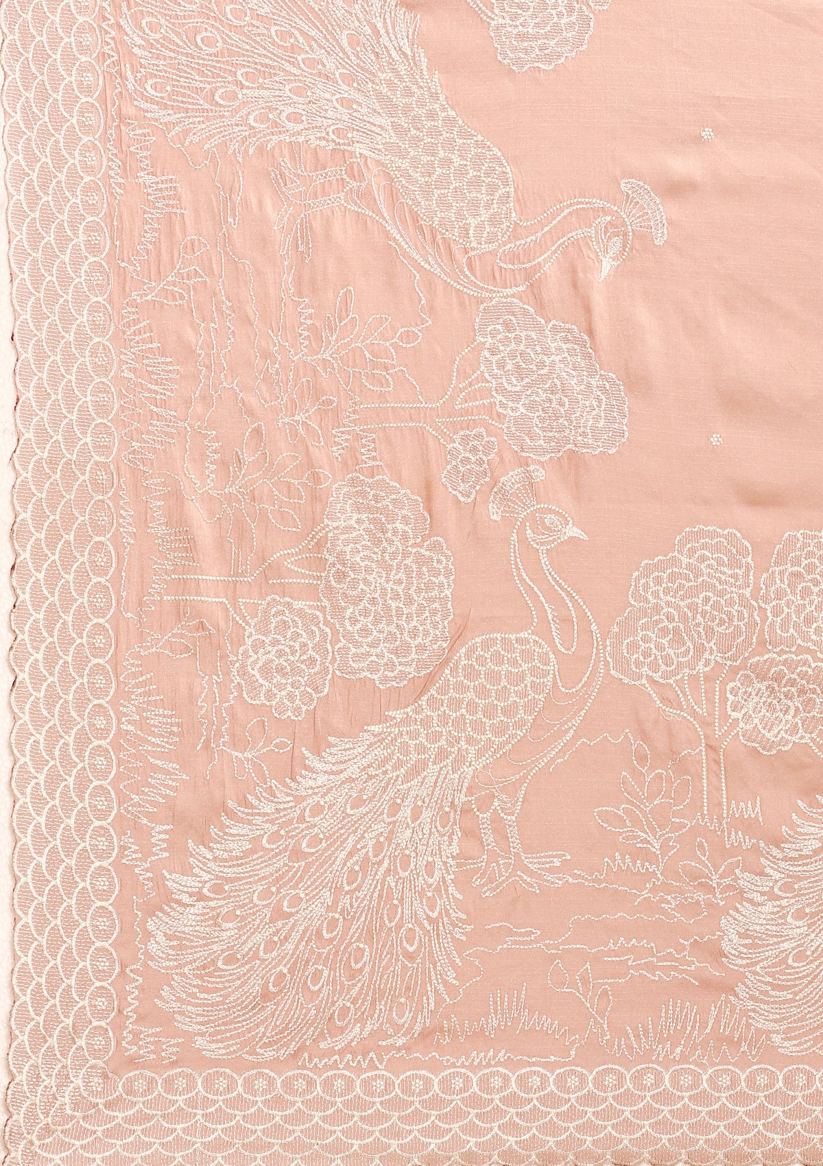 It features a finely embroidered scalloped border that adds a graceful and feminine touch.