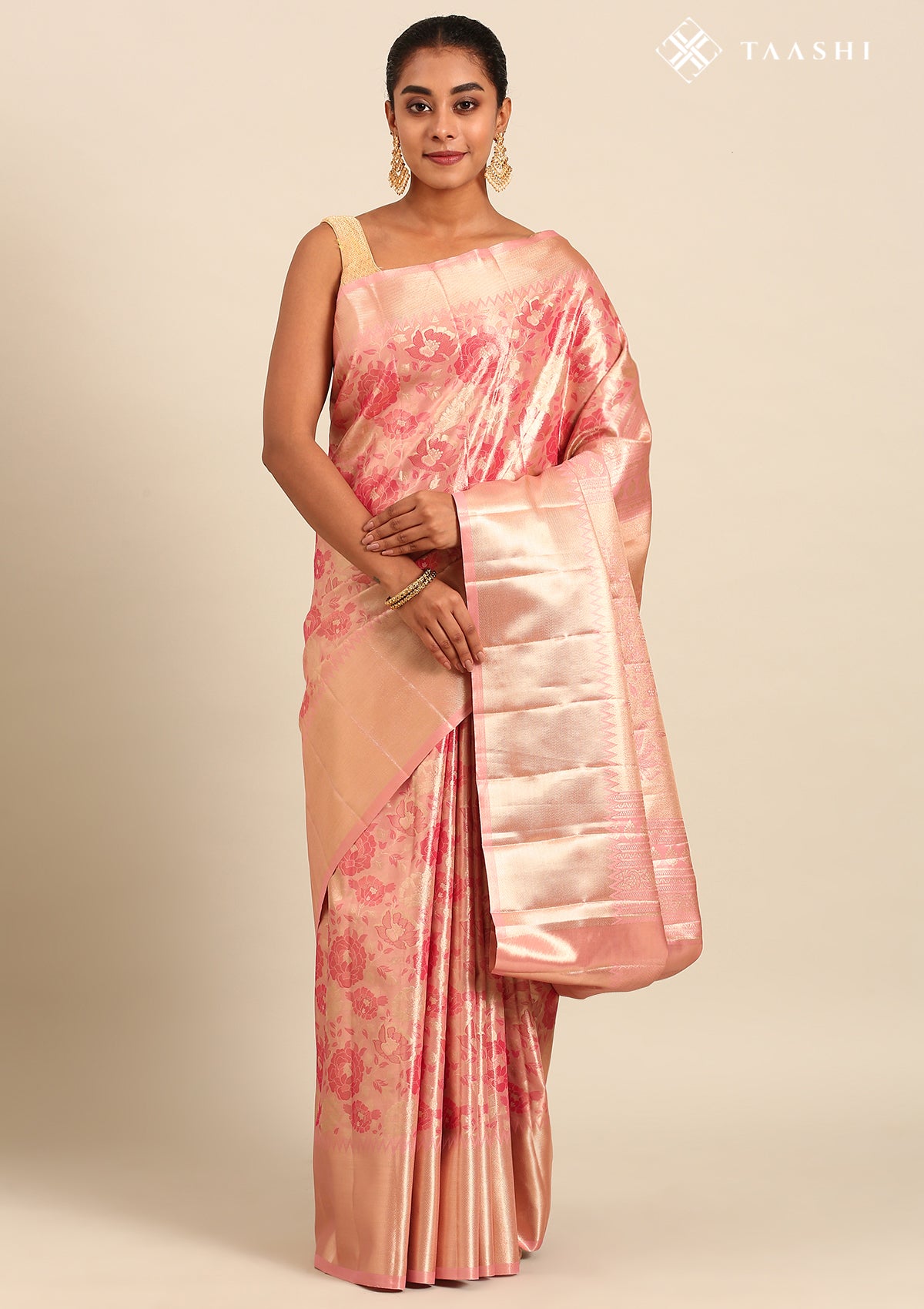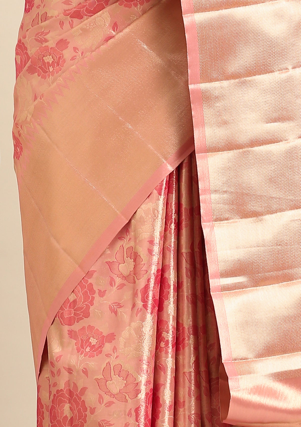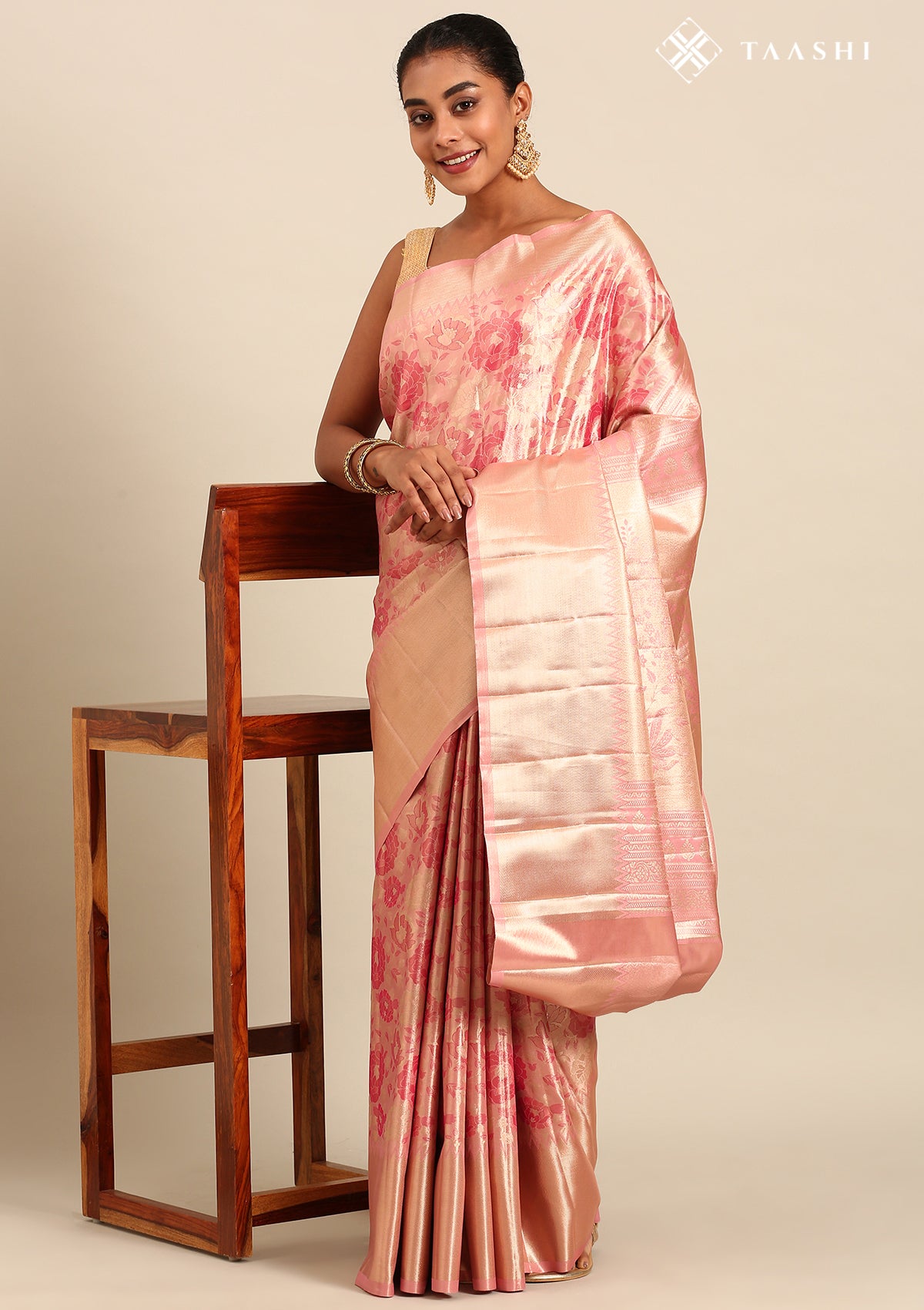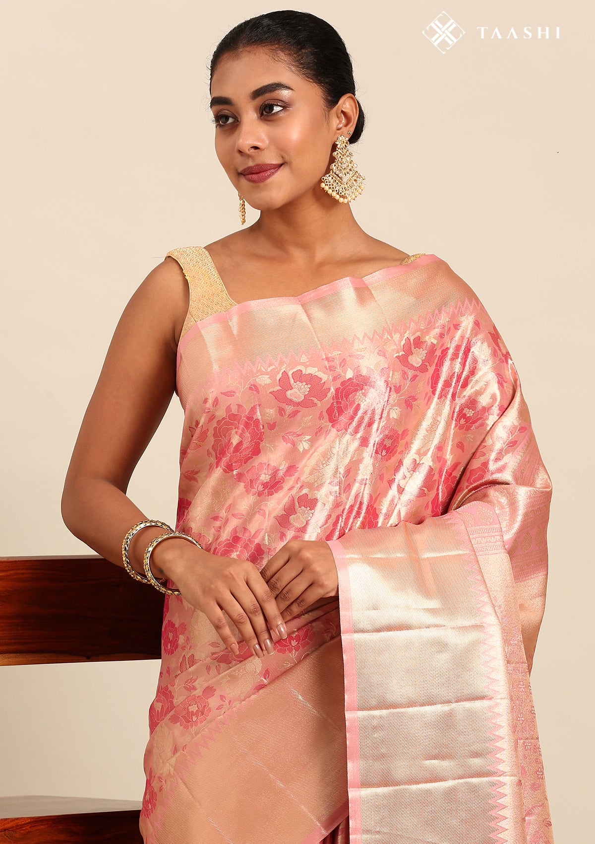 Pink and Golden Floral Pattern Tissue Brocade Kanchipuram Saree
