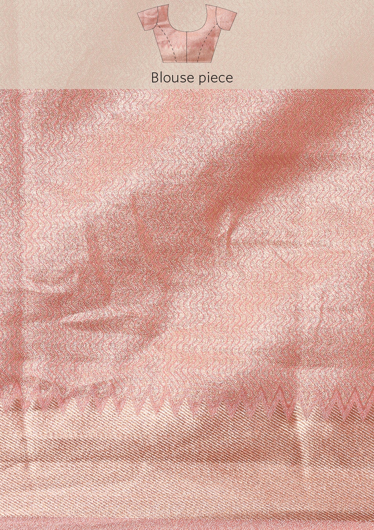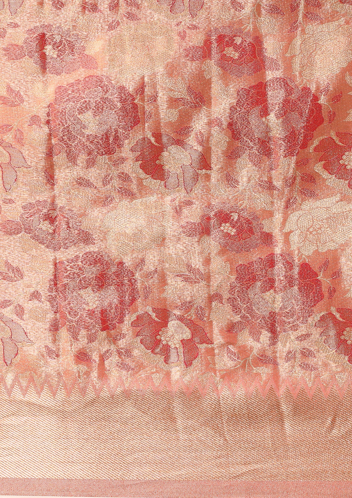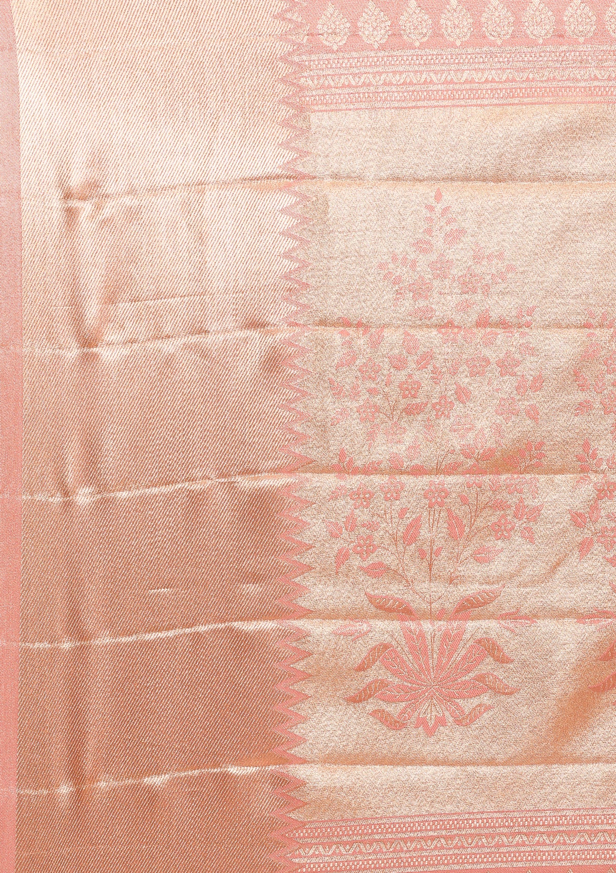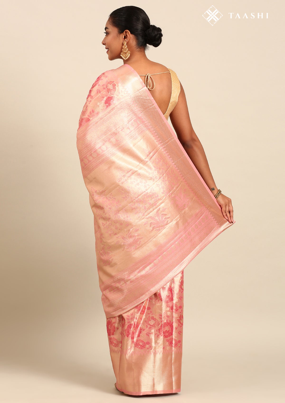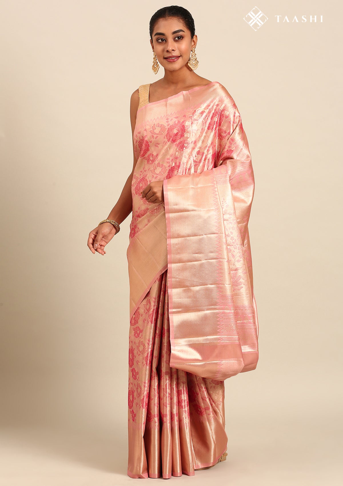 Pink and Golden Floral Pattern Tissue Brocade Kanchipuram Saree