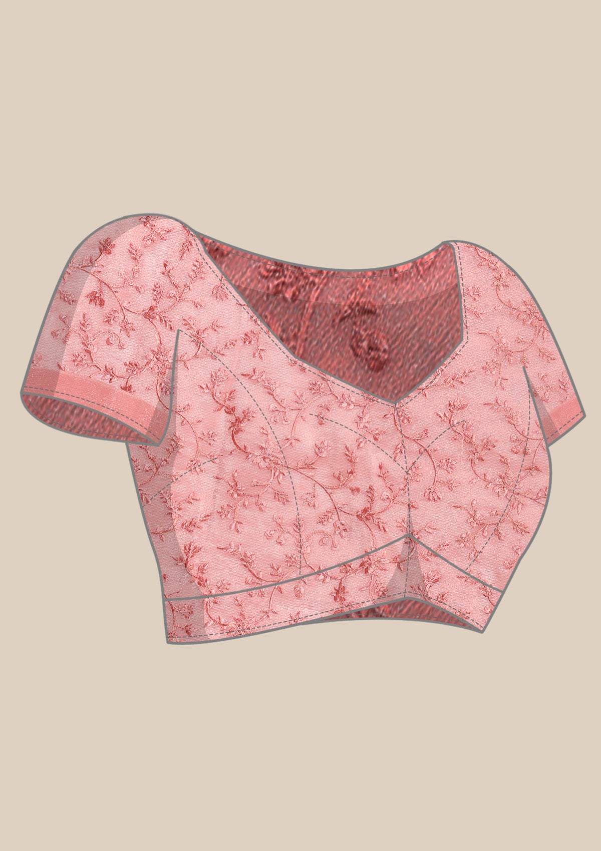 A matching embroidered blouse completes the ensemble, offering a refined and cohesive look.