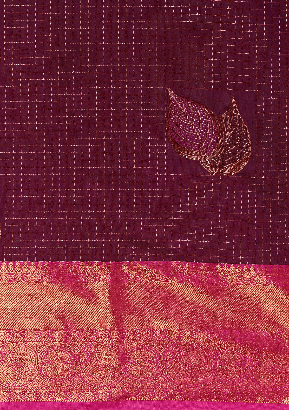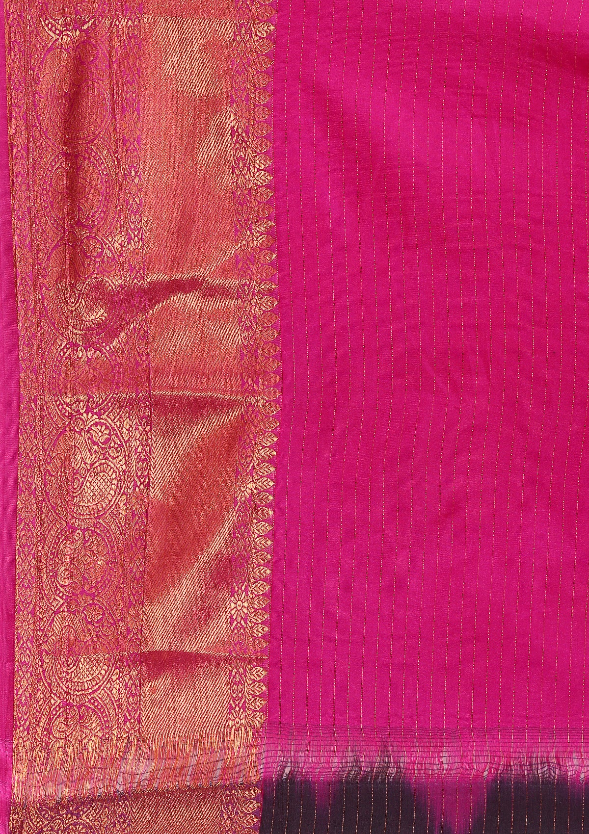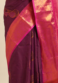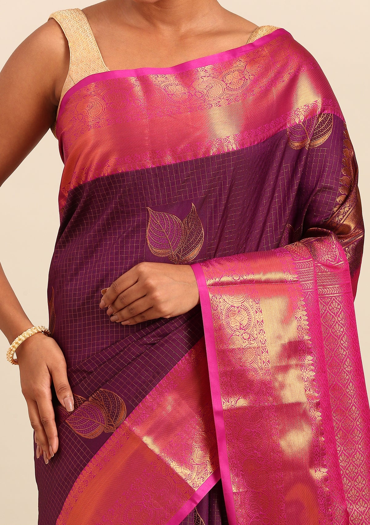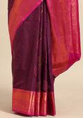 Experience the charm of the Dark Purple and Magenta Kanchipuram Saree, crafted from fine Polyester Blended fabric.