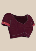 - Highlights a striking 6-inch magenta border that beautifully frames the saree