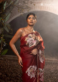 Celebrate sheer sophistication with the Maroon Pure Organza Saree, a stunning piece that marries delicate floral embroidery with lightweight, translucent fabric. Perfect for special occasions, this saree offers a blend of traditional charm and contemporary grace.