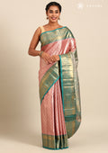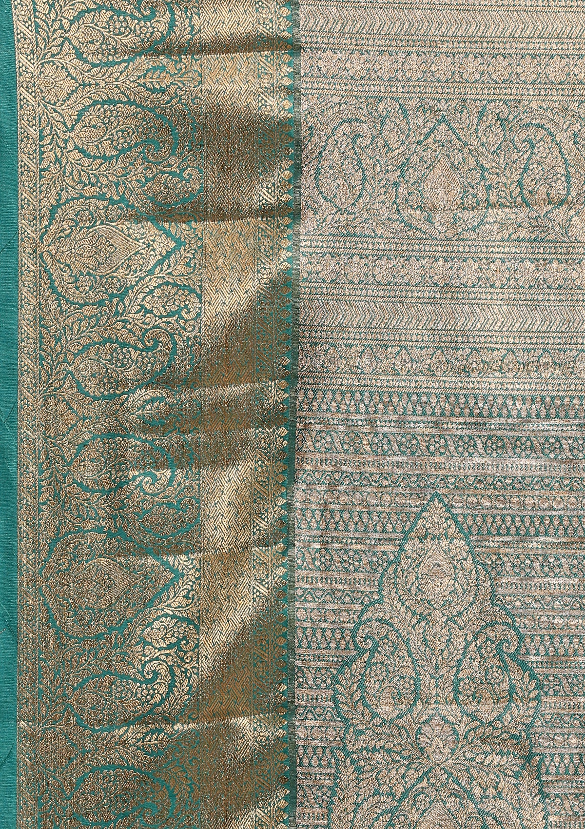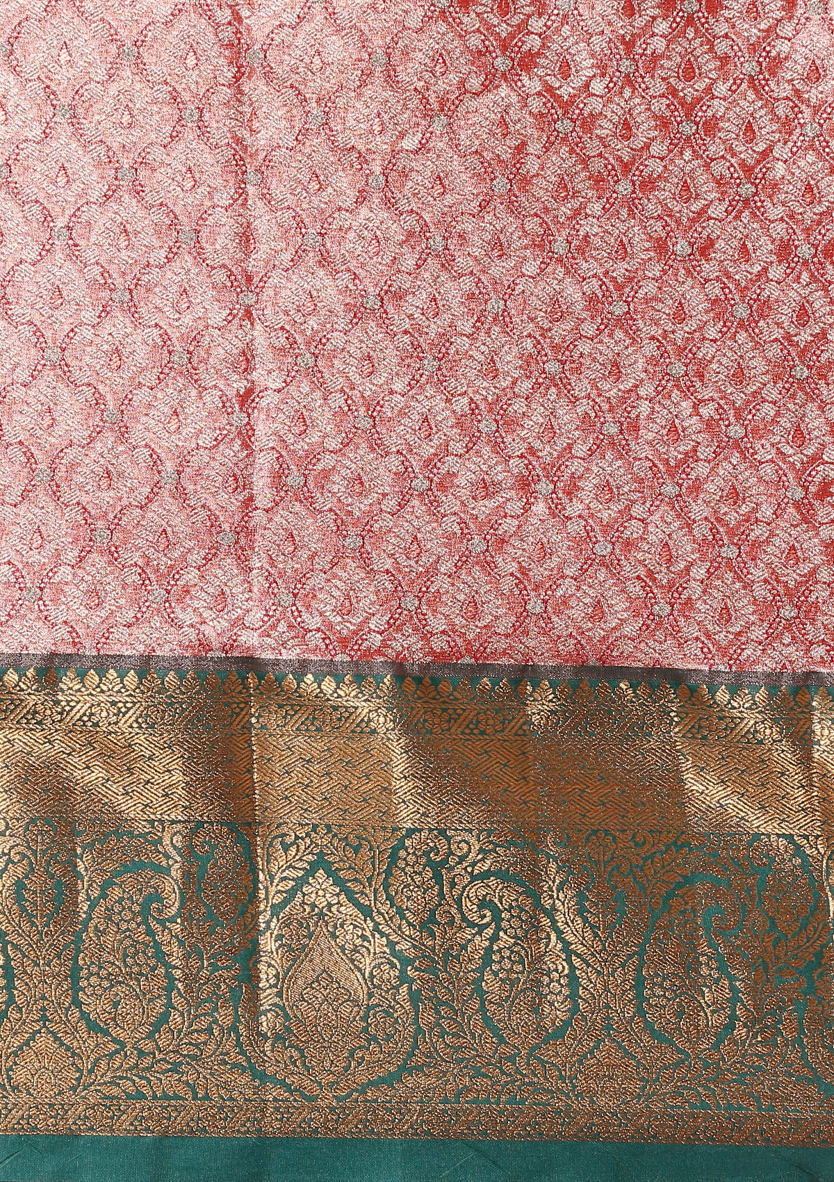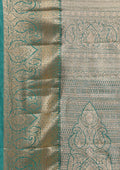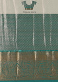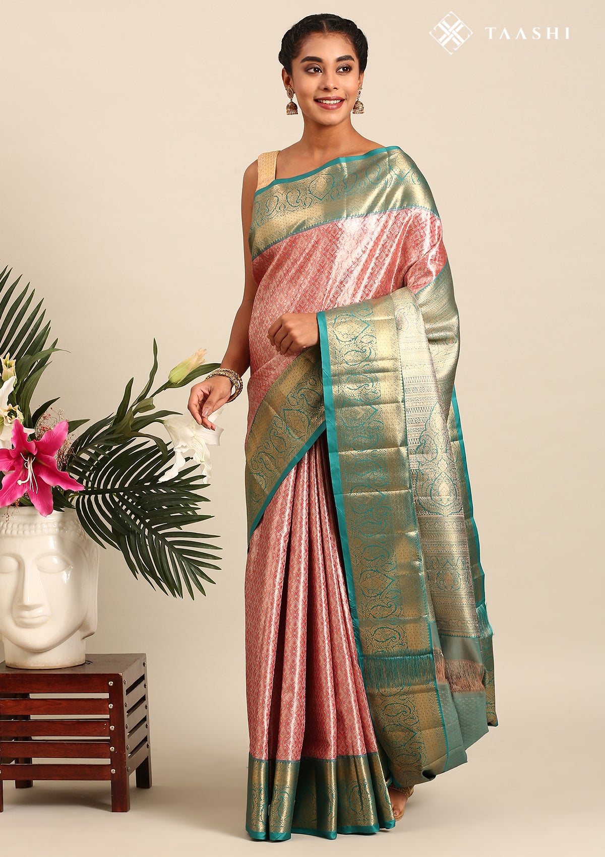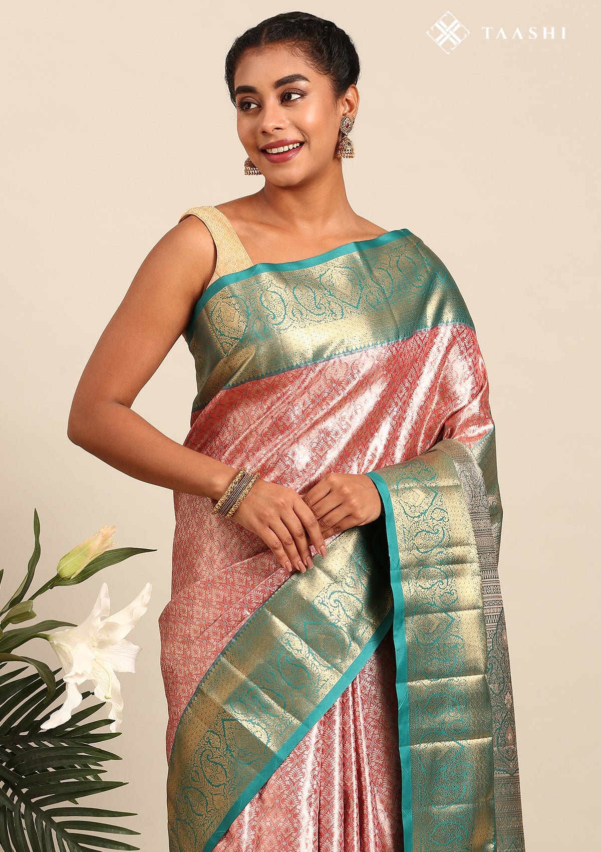 - Styled with a 6-inch teal border that beautifully outlines the saree with bold contrast