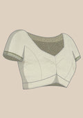 A plain pallu enhanced with an embroidered border lends a graceful and balanced finish to the ensemble.