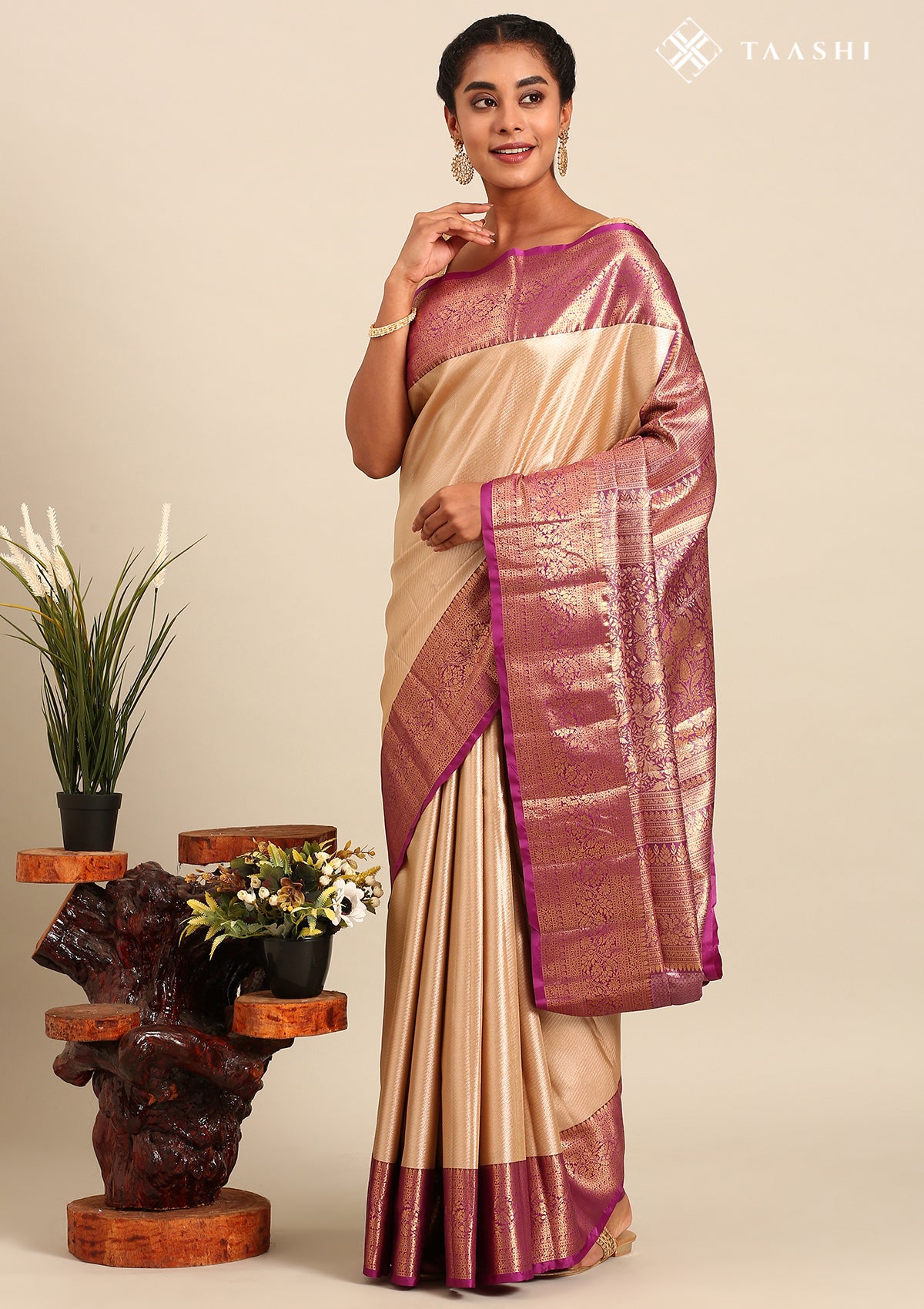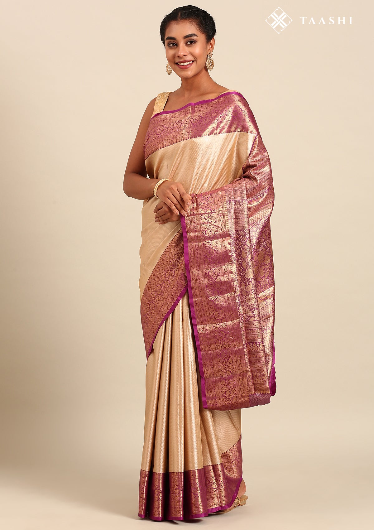 - Features a bold 7-inch purple border that frames the saree with regal charm