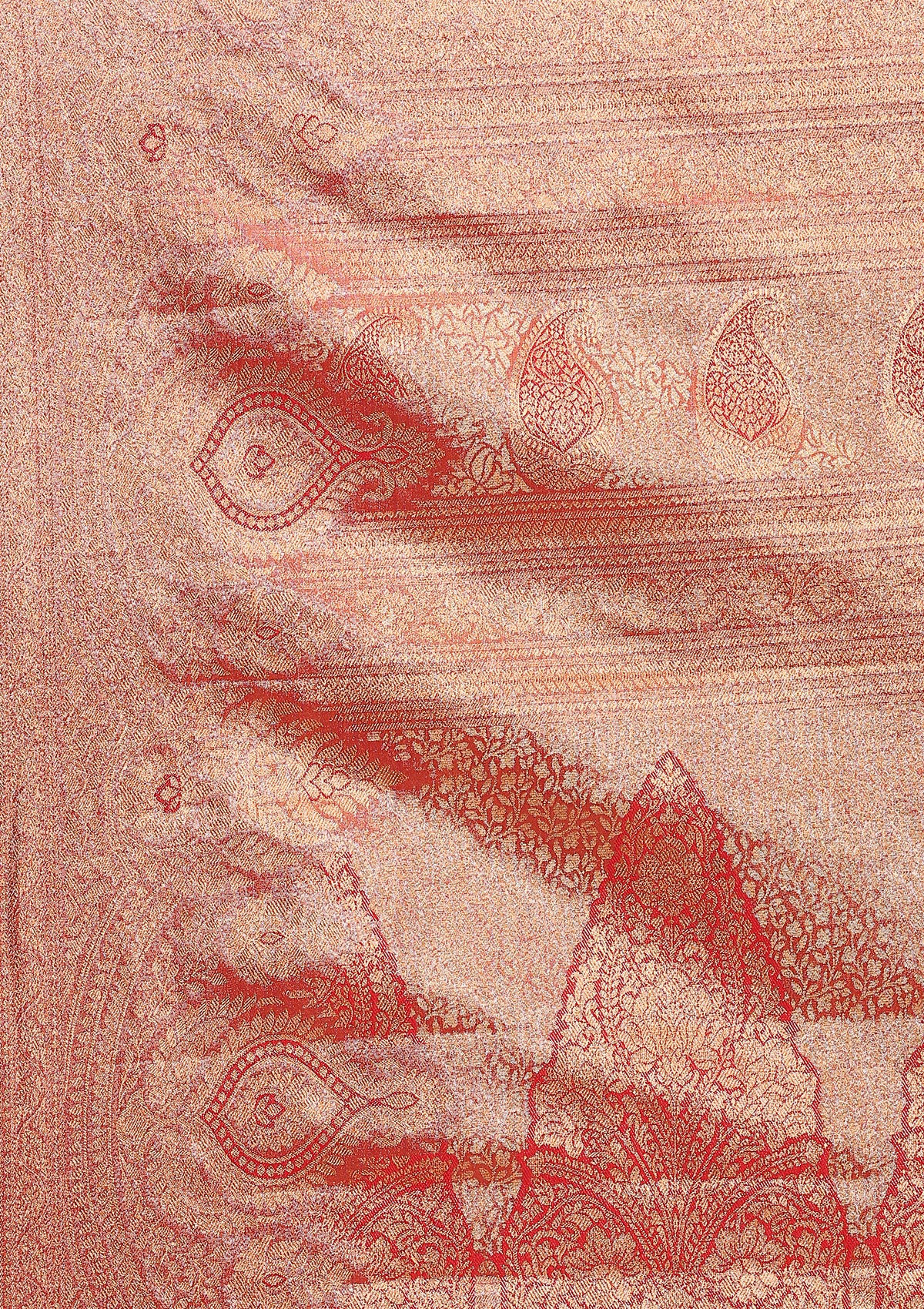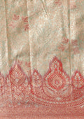 A richly woven pallu adorned with elegant butta motifs enhances the saree’s luxurious and festive appeal.