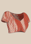 Vibrant and graceful, this turquoise and orange polyester blended tissue saree beautifully merges traditional artistry with modern charm.