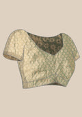 A matching blouse completes the saree, creating a cohesive and graceful look.
