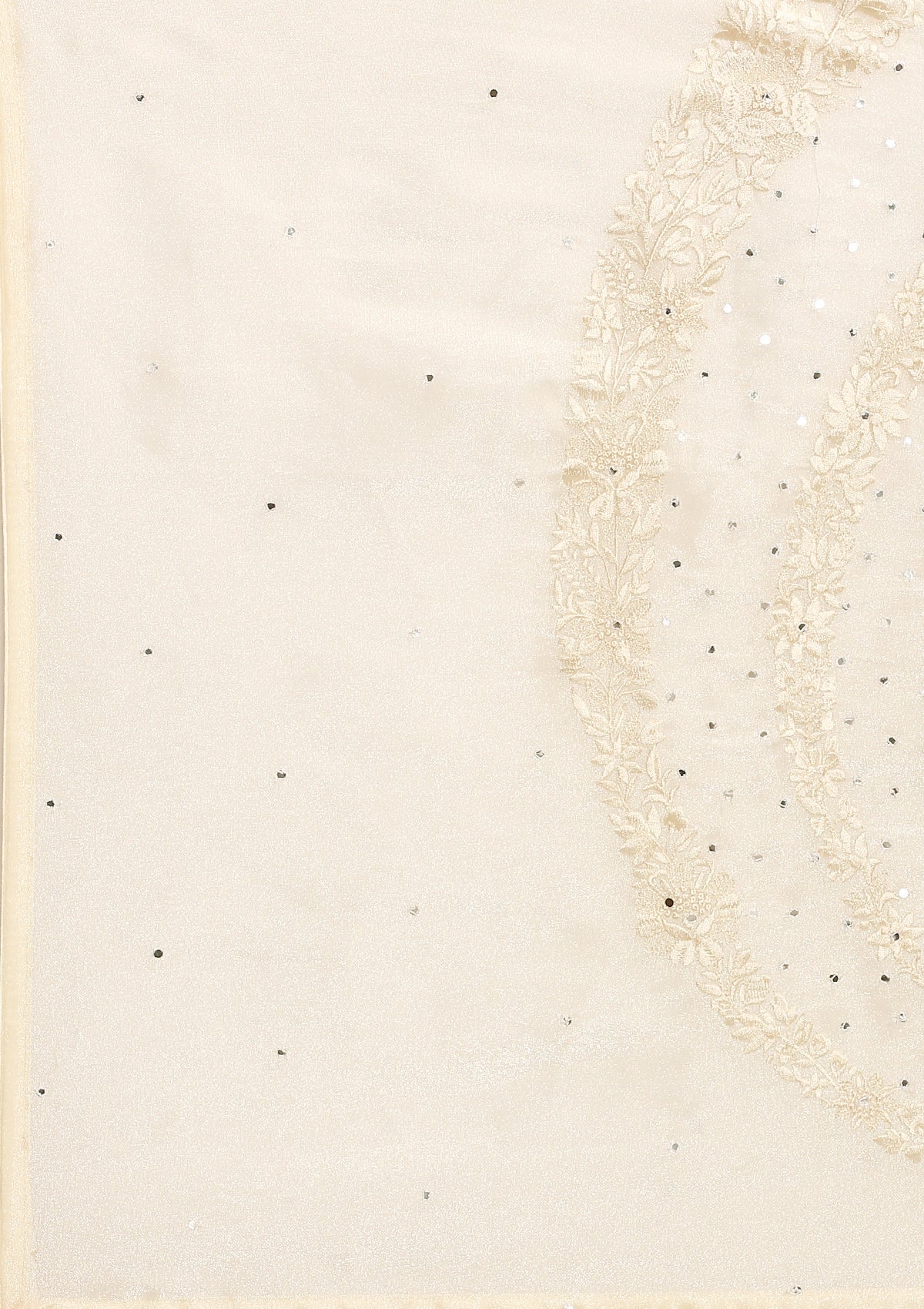 The body features plain placement embroidery highlighted with mirror butta work, adding a subtle shimmer and refined detailing.